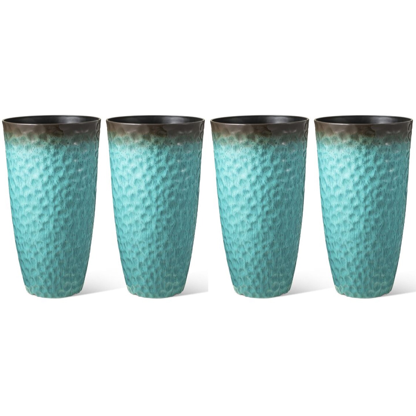 23.75"H Set of 4 Oversized Honeycomb Textured Turquoise Tall Plastic Planter