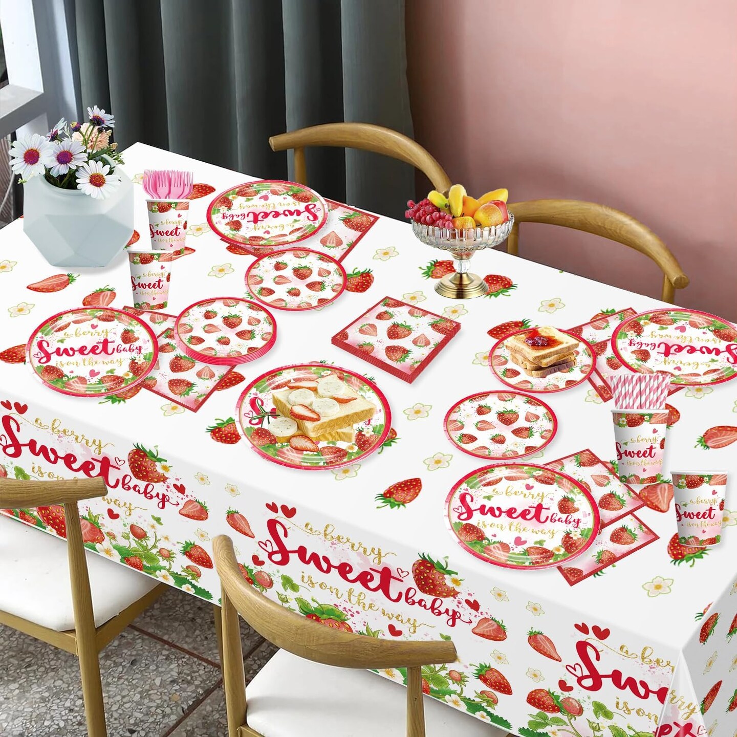 239pcs Strawberry Baby Shower Decorations for Sweet Girl (Red Pink and Gold)