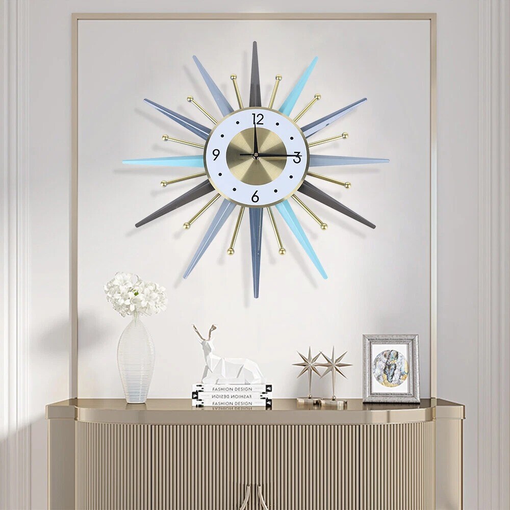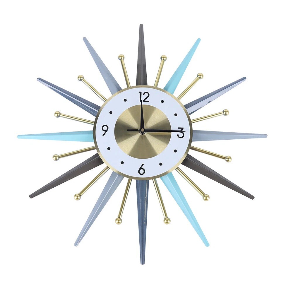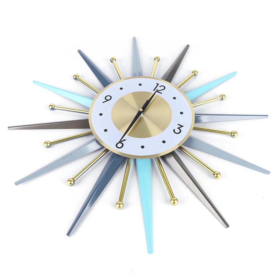 23-Inch Retro Metal Sunburst Wall Clock – Mid Century Modern