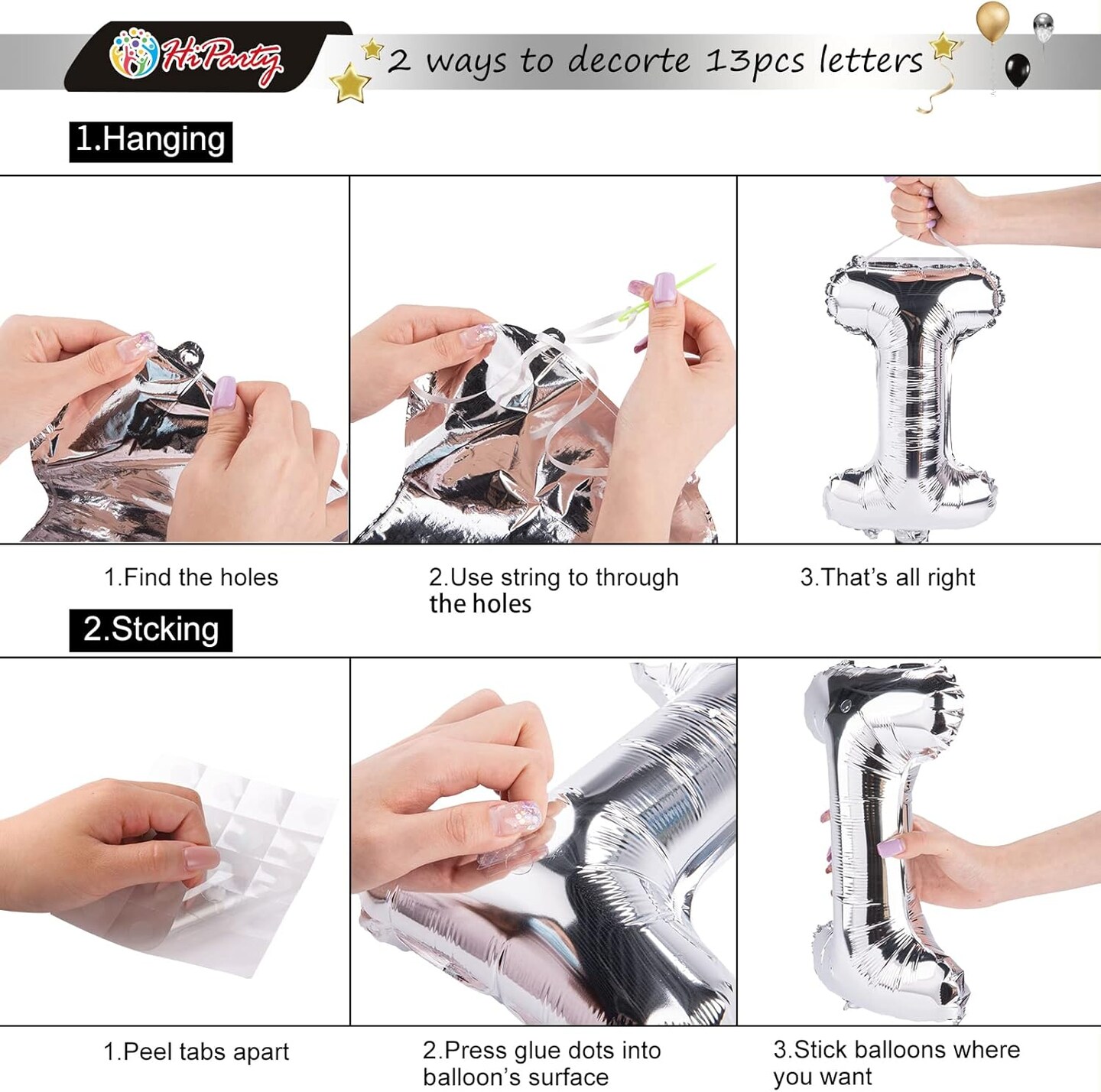 23pcs Birthday Balloons Banner, 3D Silver Premium Mylar Foil Ecofriendly Letter Happy Birthday Banner with 5pcs Star Balloons Kits for Kids Boys Men Adults Birthday Party Decorations
