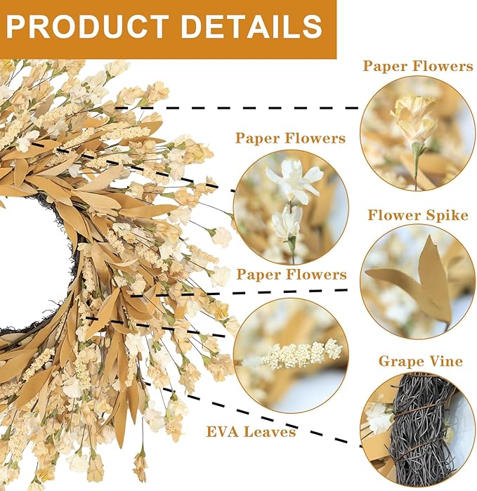 24'' Fall Wreaths for Front Door,Autumn Wreath,Fall Door Wreath,Spring Wreath,Fall Decorations for Home Window Wall Porch Farmhouse Wedding Home Decor Fall Wreath
