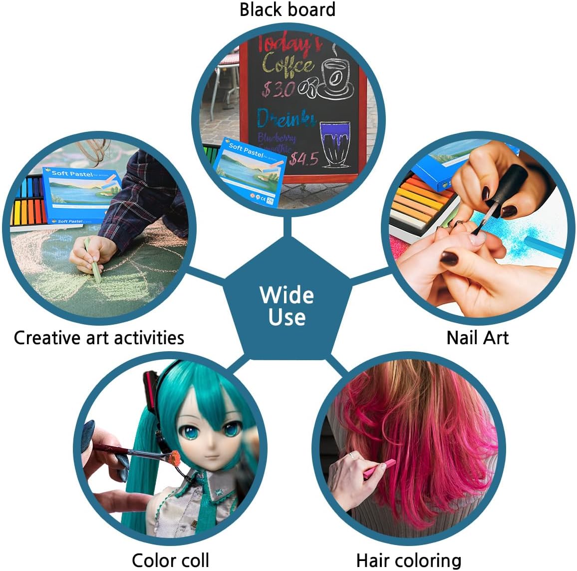 24 Assorted Colors Non Toxic Art Supplies, Square Charcoal,Soft Chalk Pastels