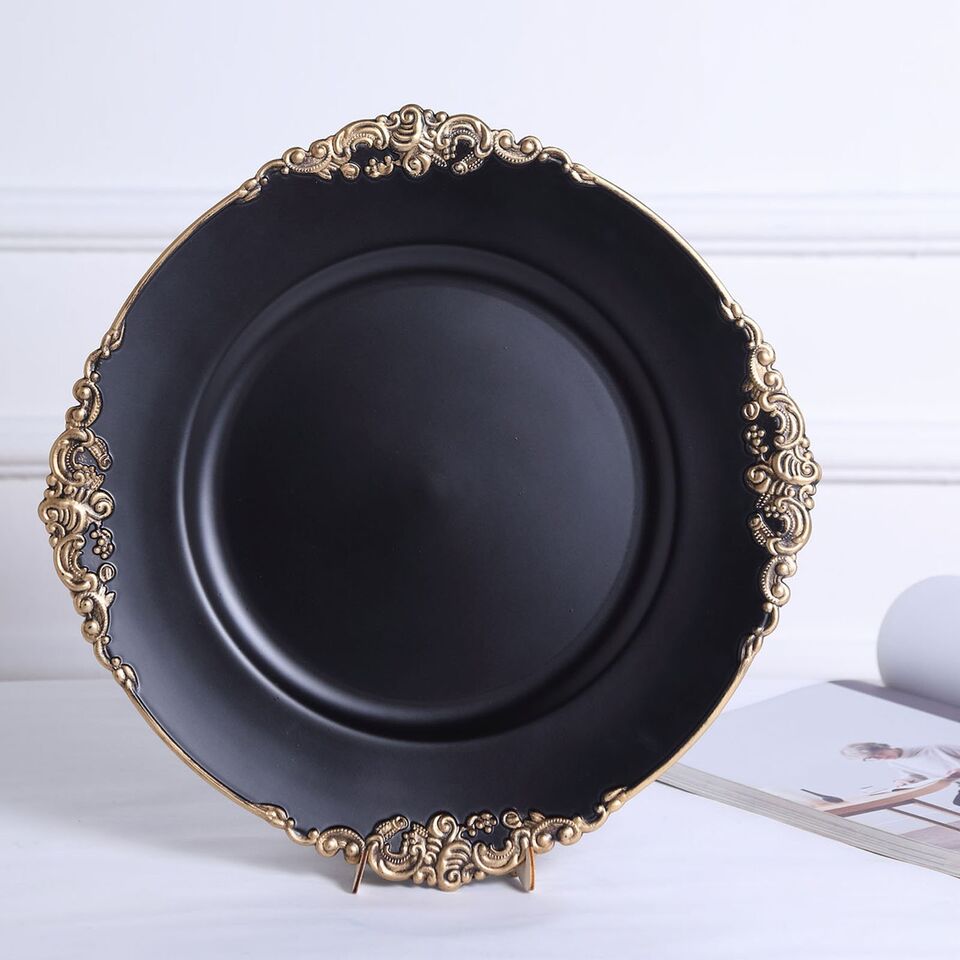 24 BLACK GOLD 13" Round Embossed Rim Charger Plates
