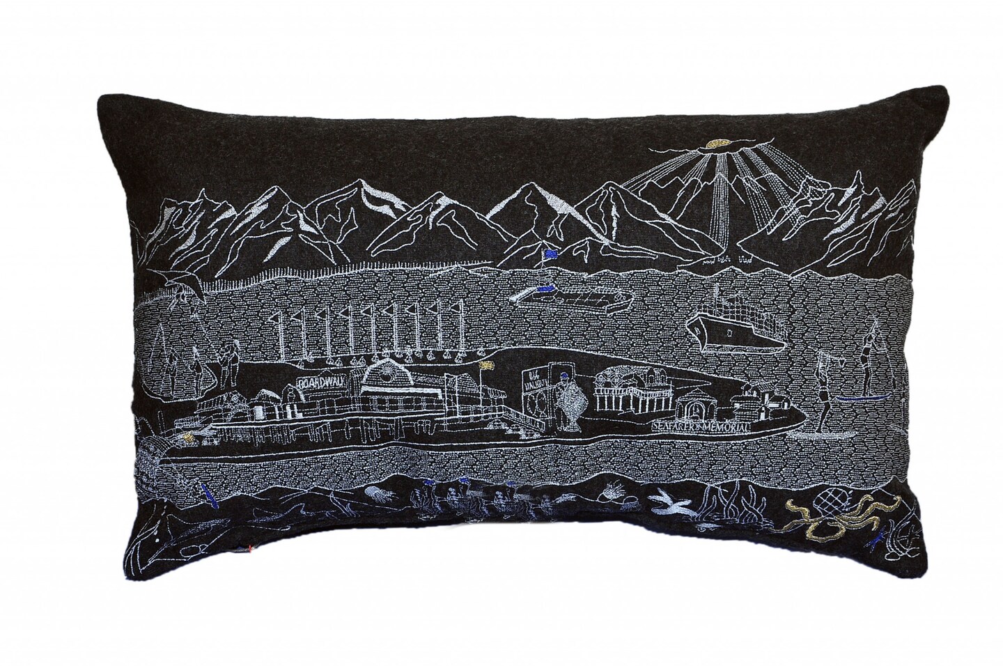 24" Black Homer Spit Nighttime Skyline Lumbar Decorative Pillow