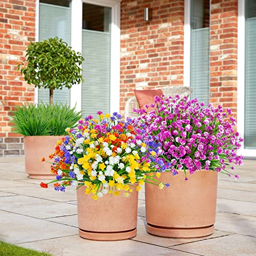 24 Bundles Artificial Flowers for Outdoor Decoration UV Resistant Fake Plastic Plants Faux Boston Fern Artificial Greenery for Summer Indoor Outdoor Garden Patio Window Box Kitchen Home Decor