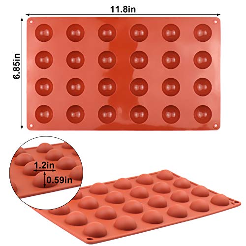 24 Cavities Semicircle Silicone Molds - Mini Semi Sphere Round Dome Fondant Mold, Bomb Teacake Baking Pan for Cake Decoration, Chocolate Candy Gummy Mousse Jelly Pudding Ice Cube Tray, Set of 2