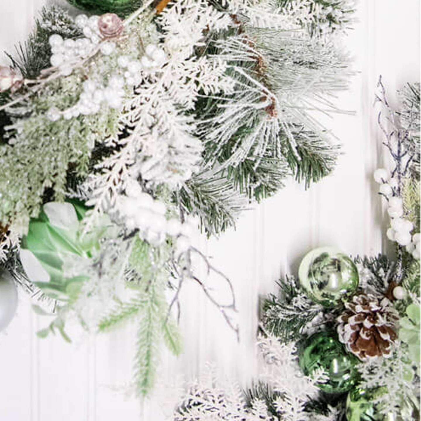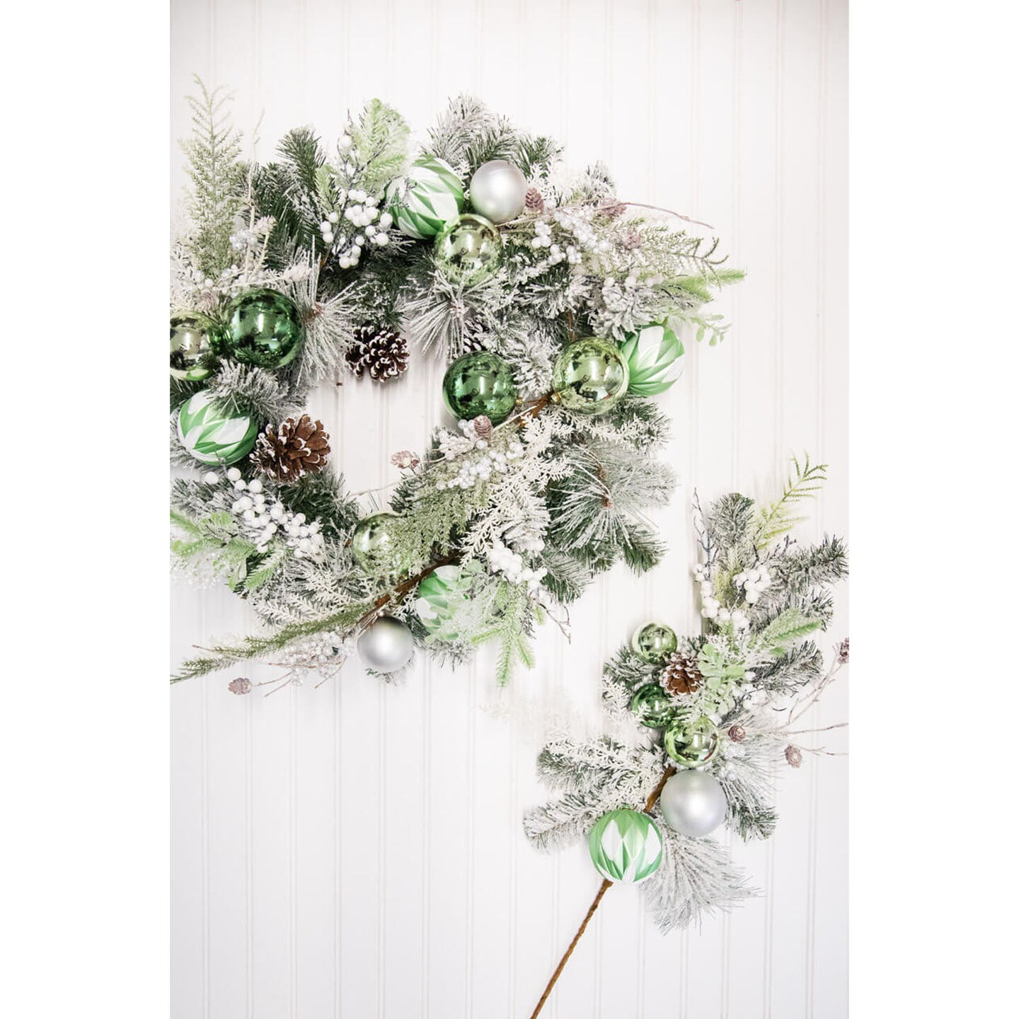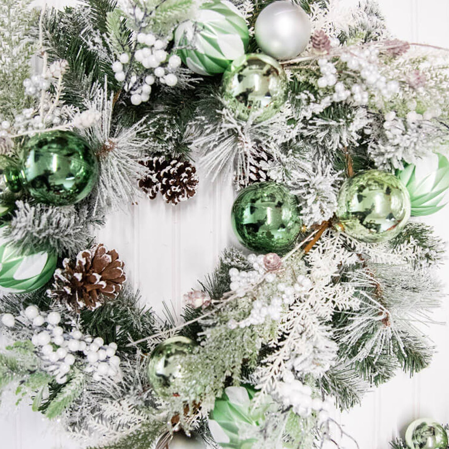 24” Christmas Pine and Ornament Wreath Holiday Front Door Wreath with Red Balls and Greenery