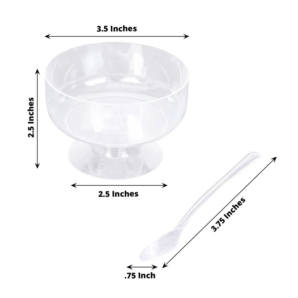 24 Clear 6 oz Disposable Footed Plastic Dessert CUPS SPOONS