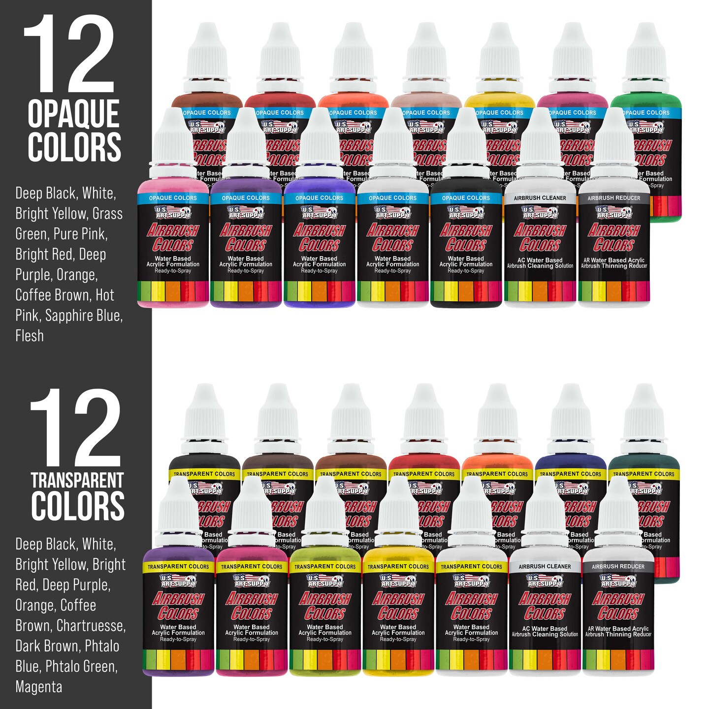 24 Color Acrylic Airbrush Paint Set & Accessories Kit with Airbrush Cleaning Pot & Holder, Air Hose, Quick-Connect and Mixing Cups