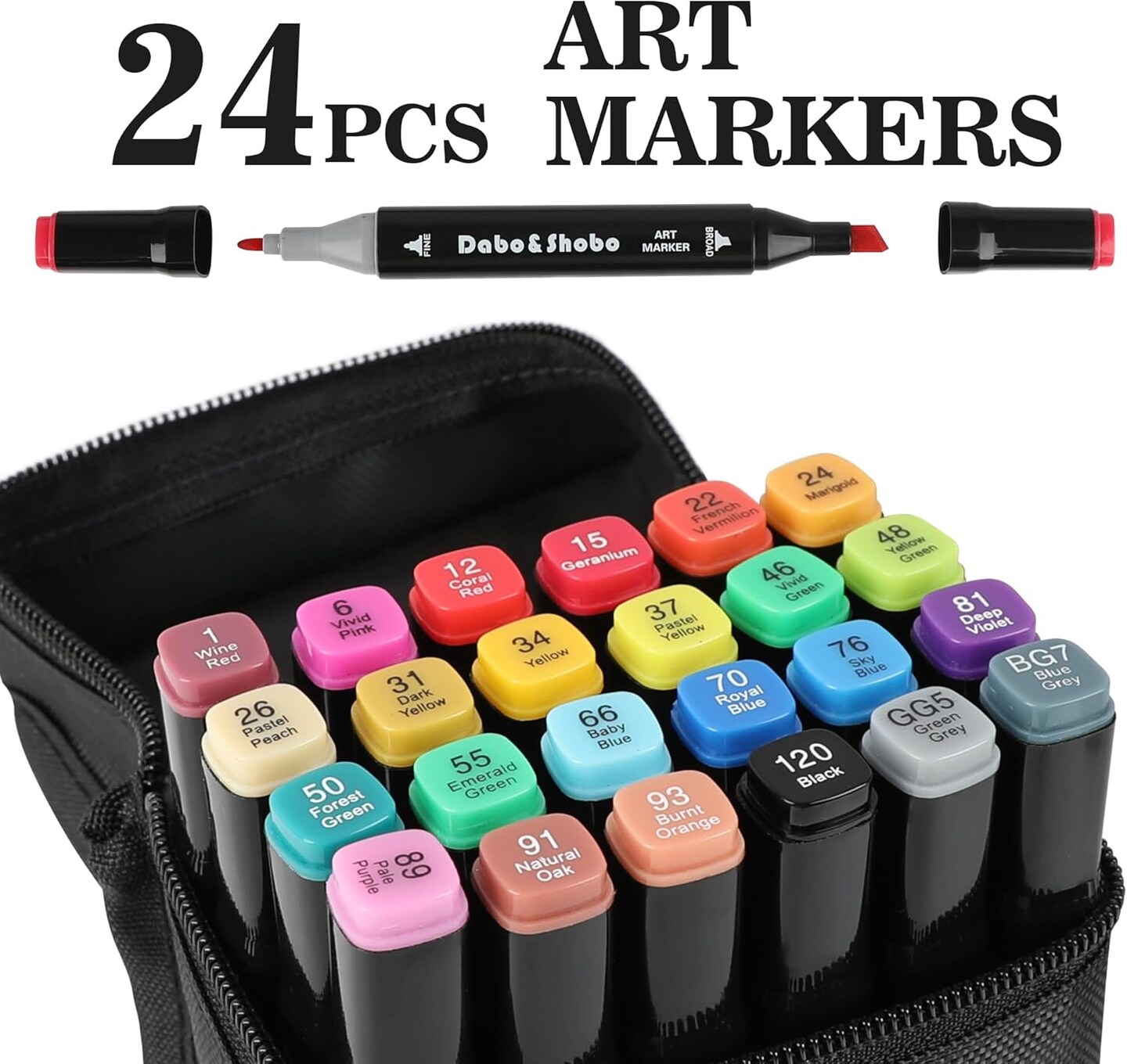 24 Colors Alcohol Markers Dual Tip Art Markers