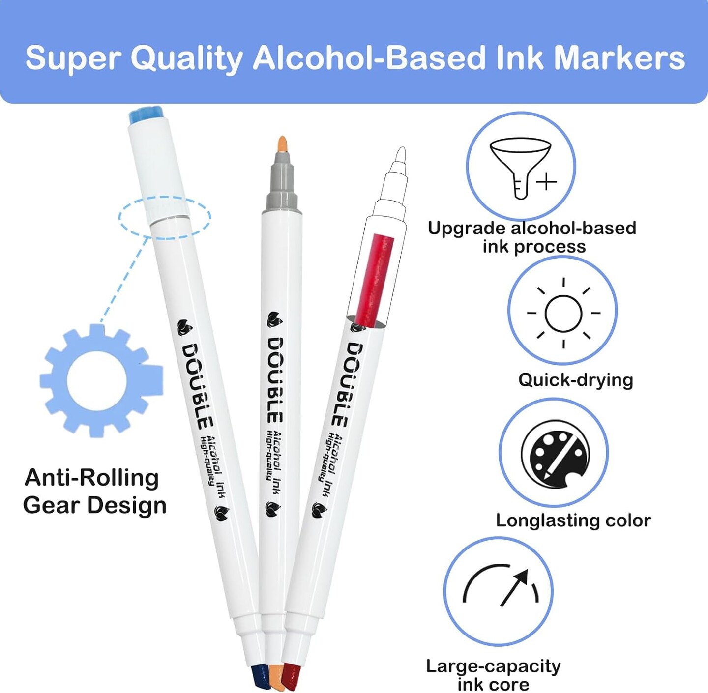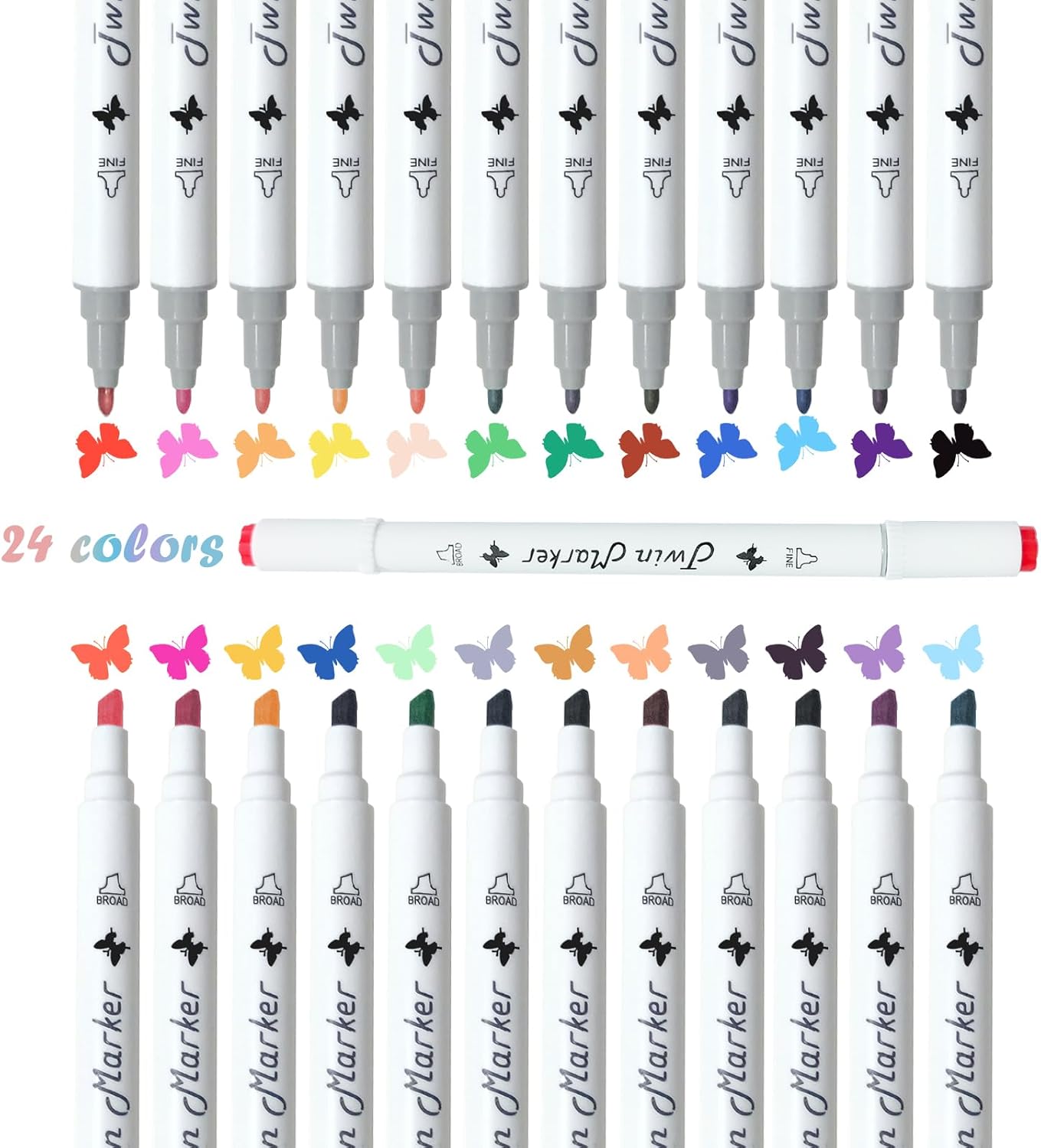 24 Colors Dual Brush Tip Permanent Art Markers Alcohol Based Marker with Case