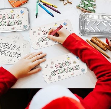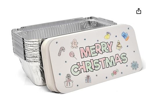 24 Count Colorful Christmas Tin Foil Containers Make Your Own Cookie Lid Covers Aluminum Disposable Food Storage Pans for Christmas Treat Exchange & Goody Party Leftovers Coloring Activity for Children