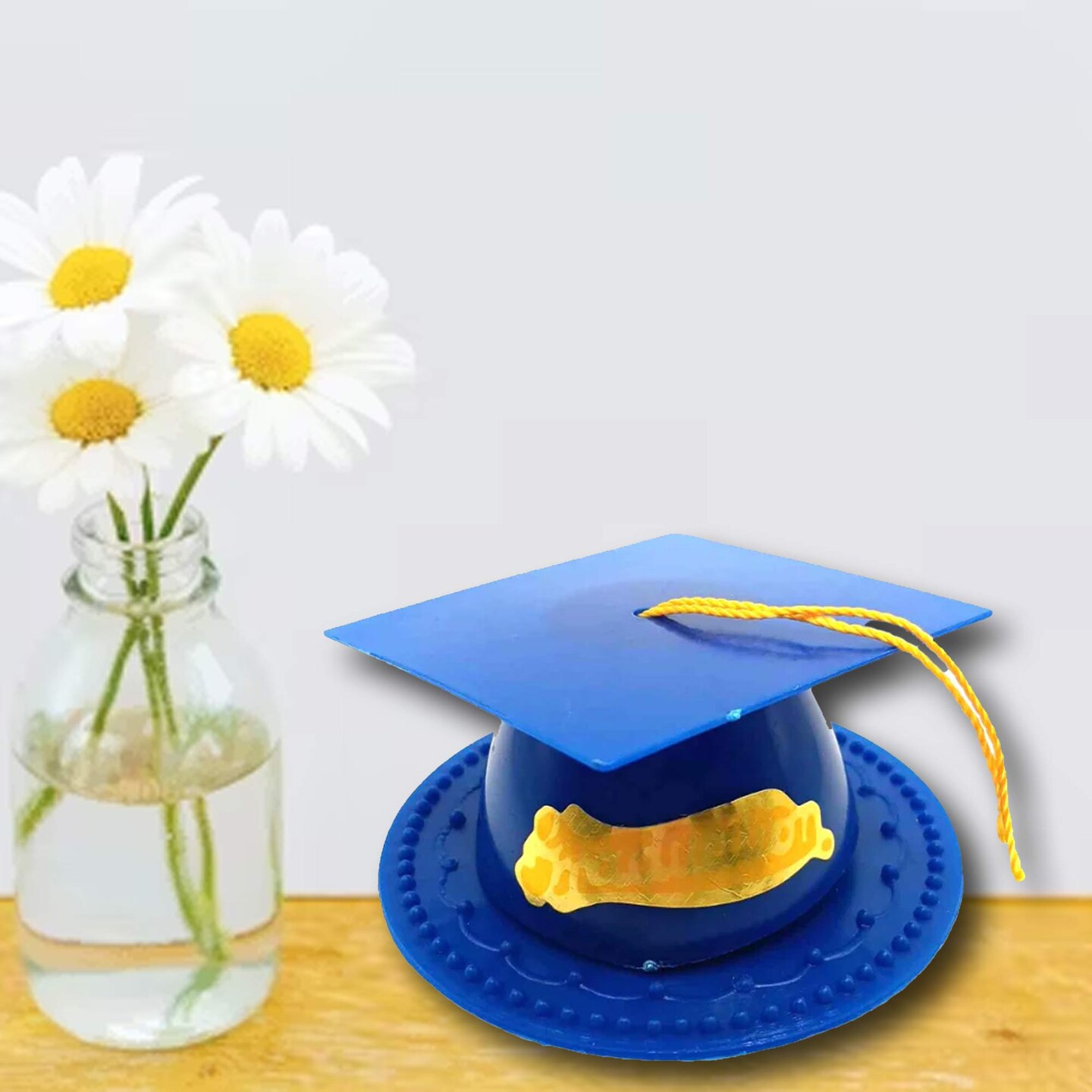 24 Count Graduation Cap Cake Topper Durable Plastic Party Decoration Royal Blue 3.5 Inch