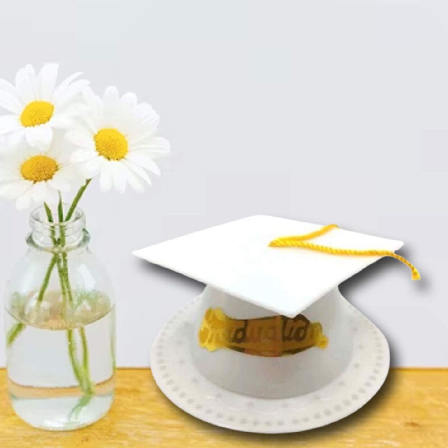 24 Count Graduation Cap Cake Topper Durable Plastic Party Decoration White 3.5 Inch