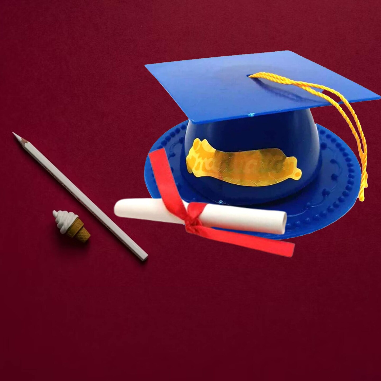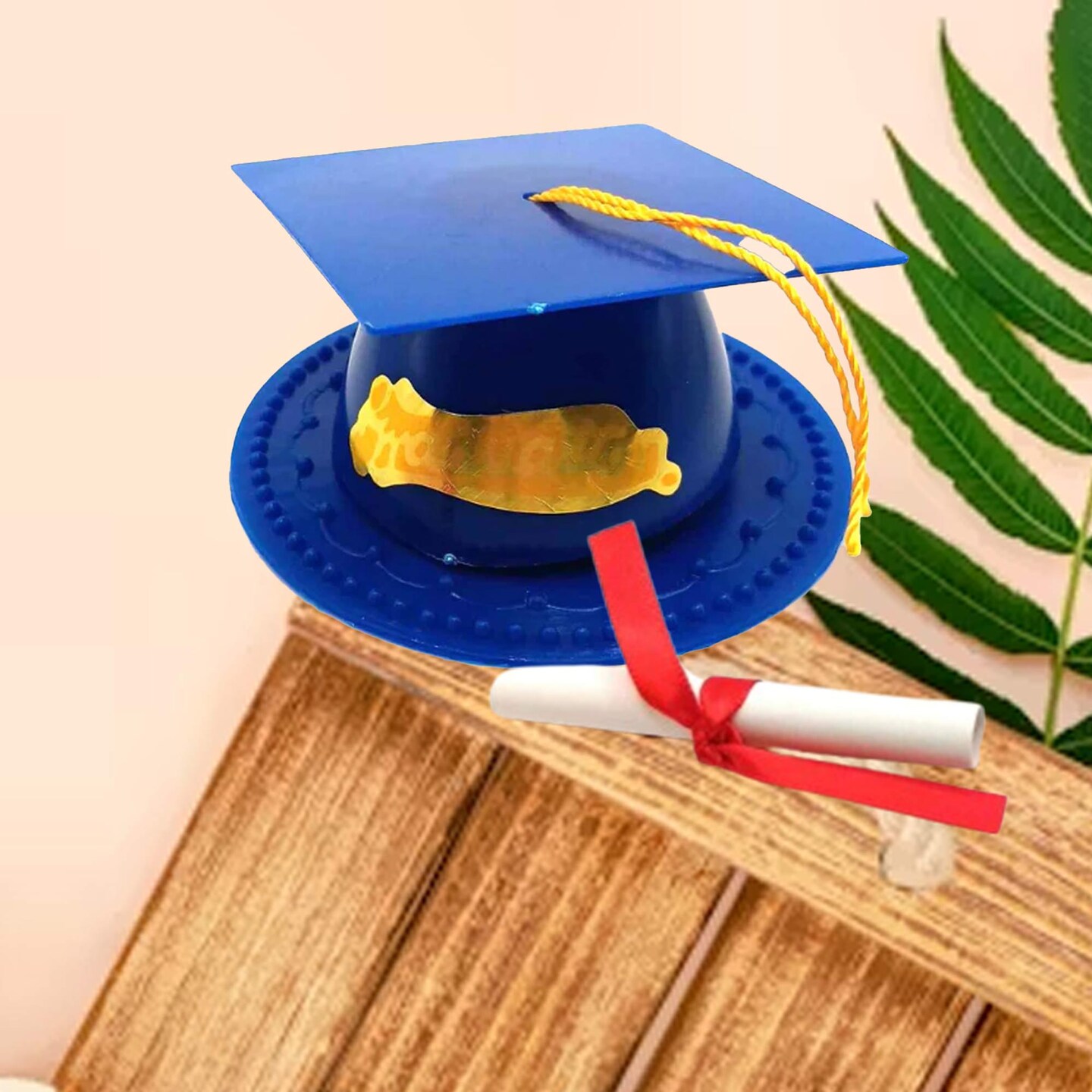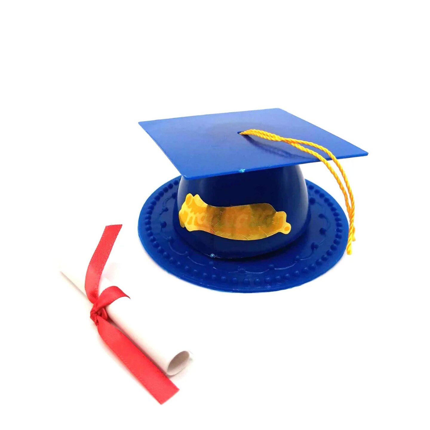 24 Count Graduation Cap Cake Topper with Diploma Plastic Paper Party Decoration Royal Blue 3.5 Inch
