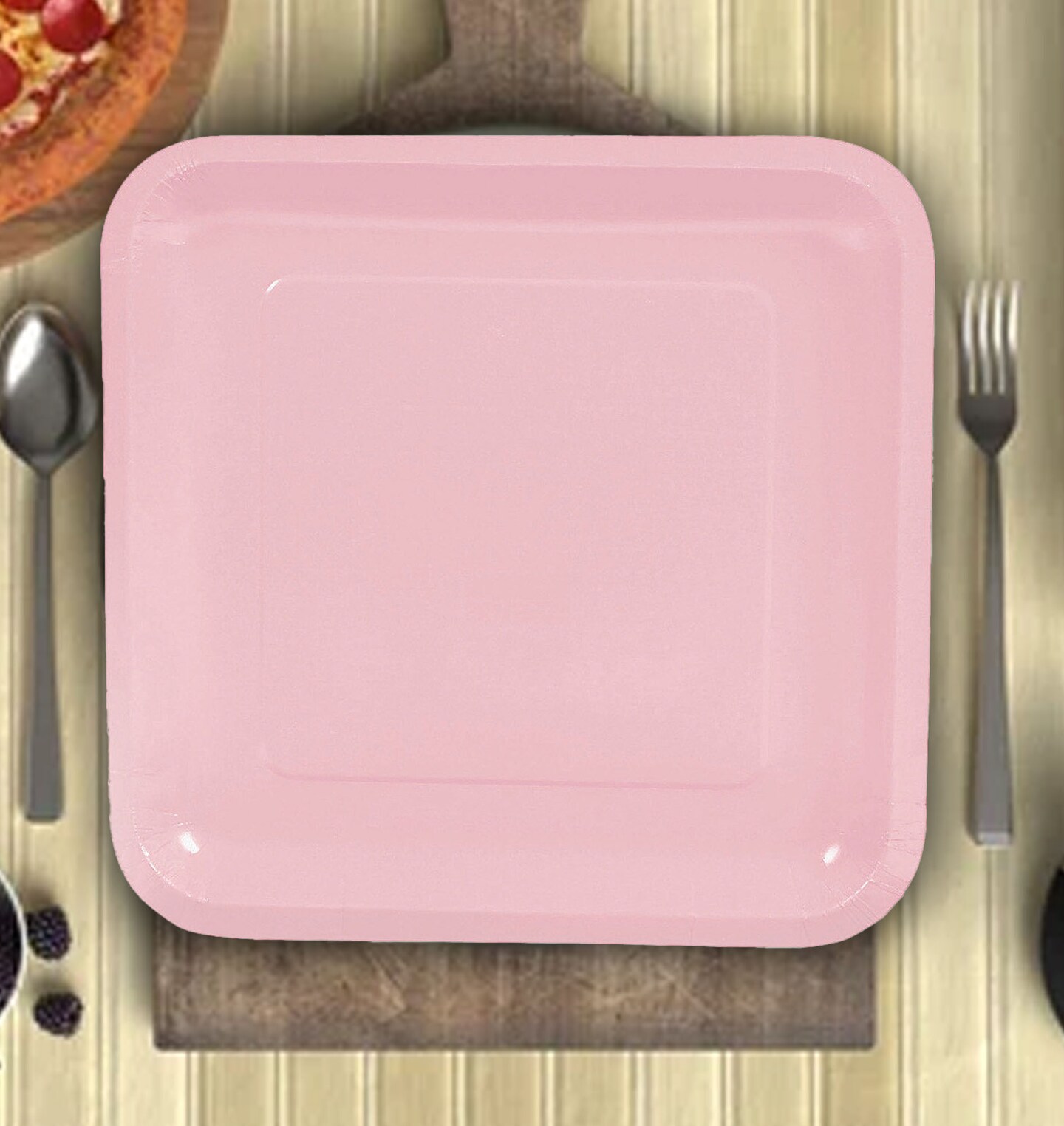 24 Count Light Pink Square Paper Dinner Plates 9" Disposable Party Tableware