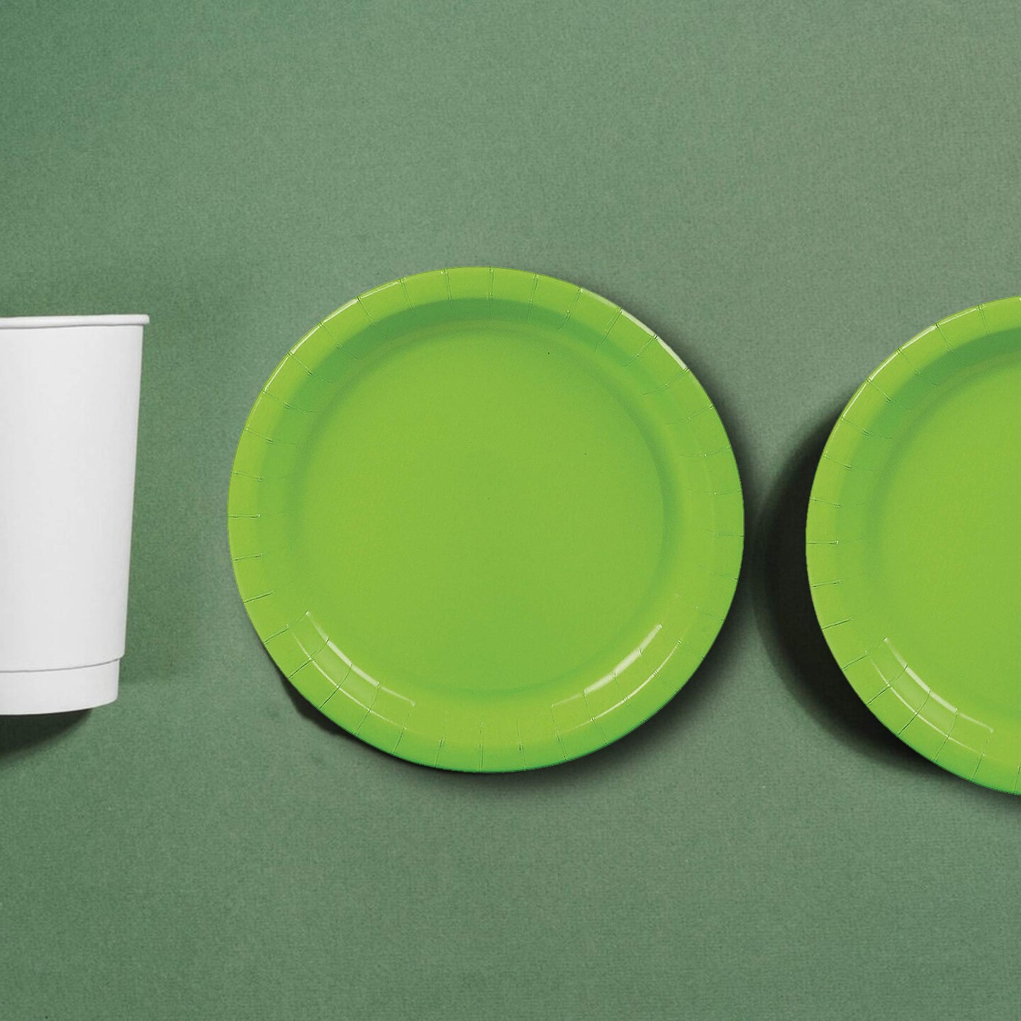 24 Count Lime Green Round Dessert Plates for Summer Parties 7 Inch