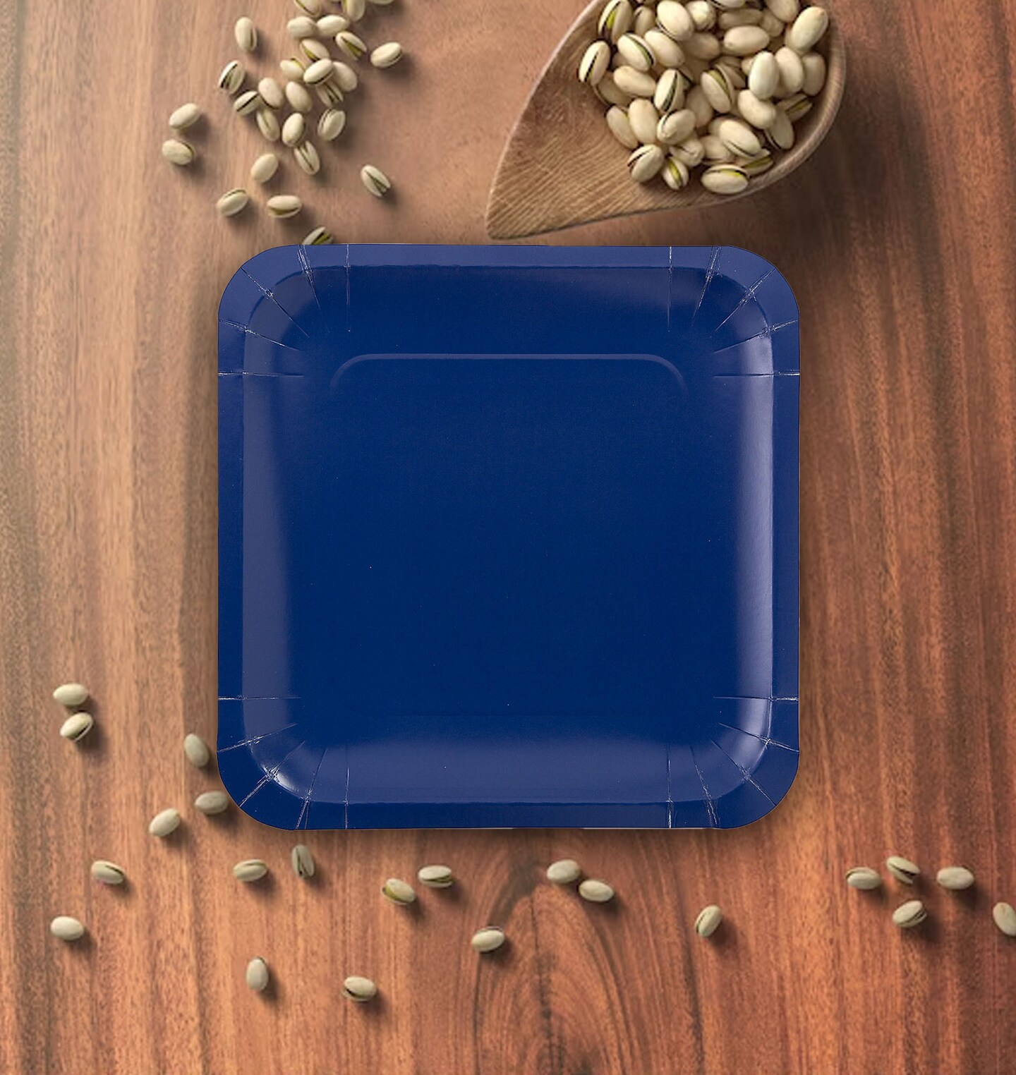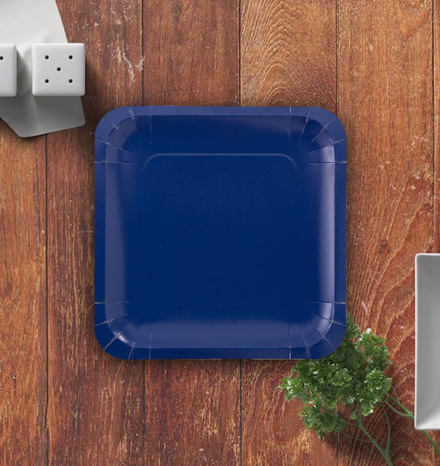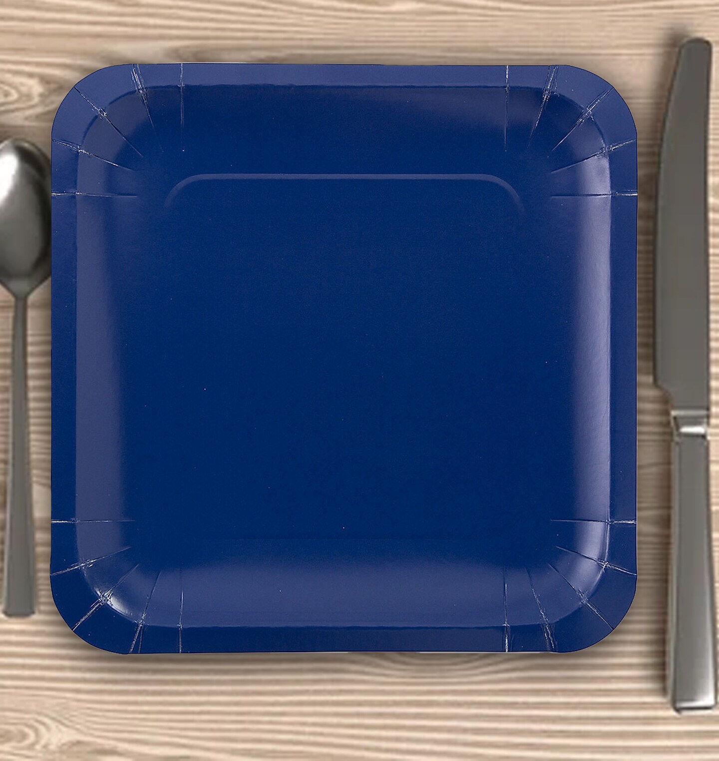 24 Count Navy Blue Square Paper Dinner Plates 9" Disposable Party Tableware