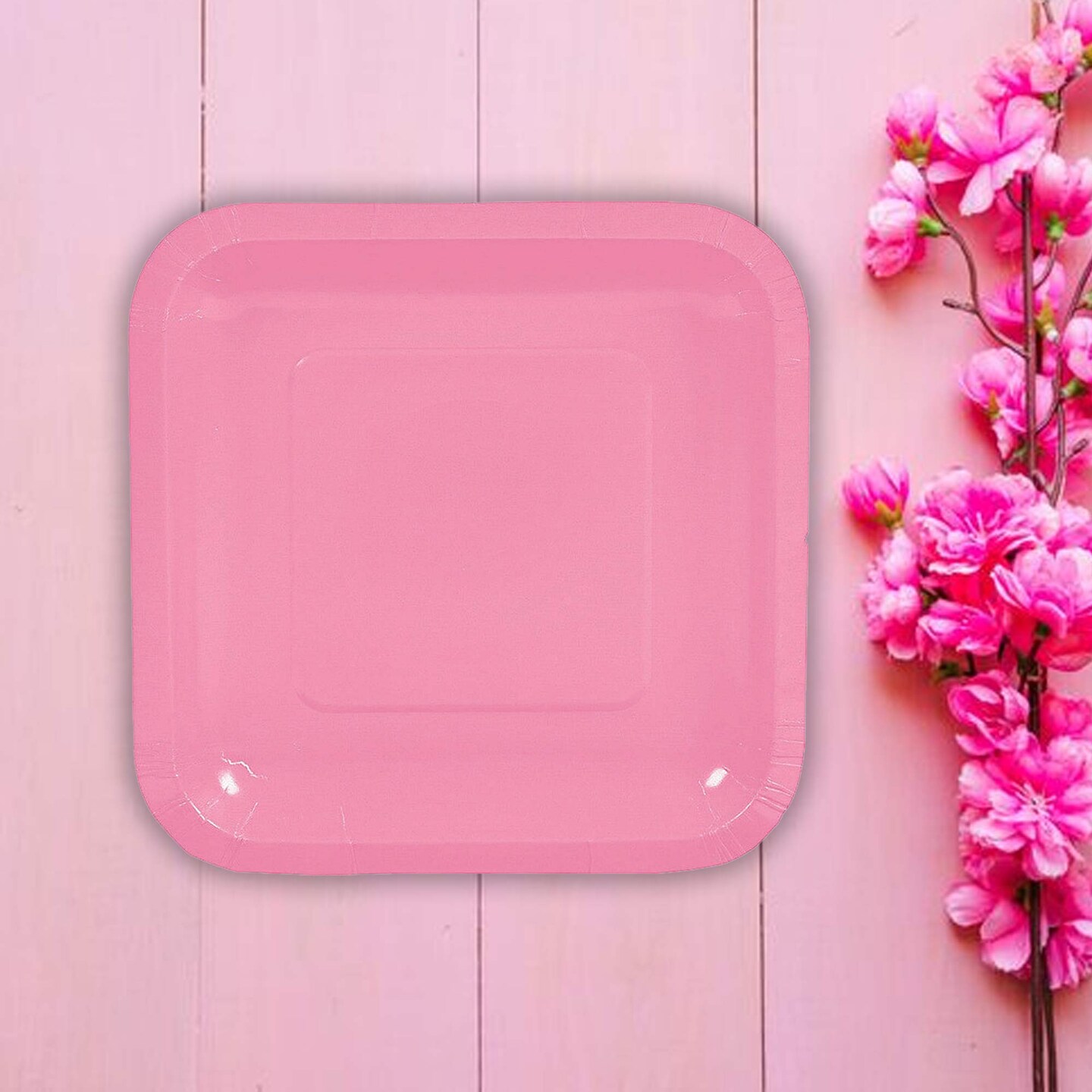 24 Count Pink Square Paper Dessert Plates for Bridal Showers Birthdays 7 Inch
