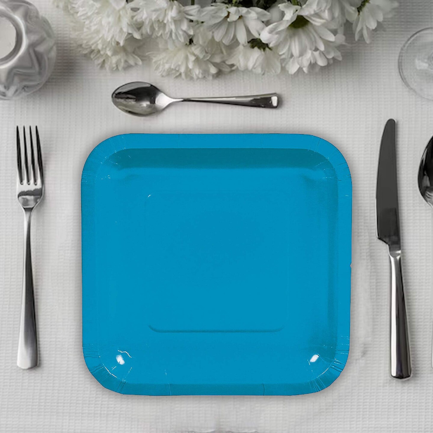 24 Count Turquoise Square Paper Dessert Plates for Wedding Party Baby Shower Birthday Event 7"