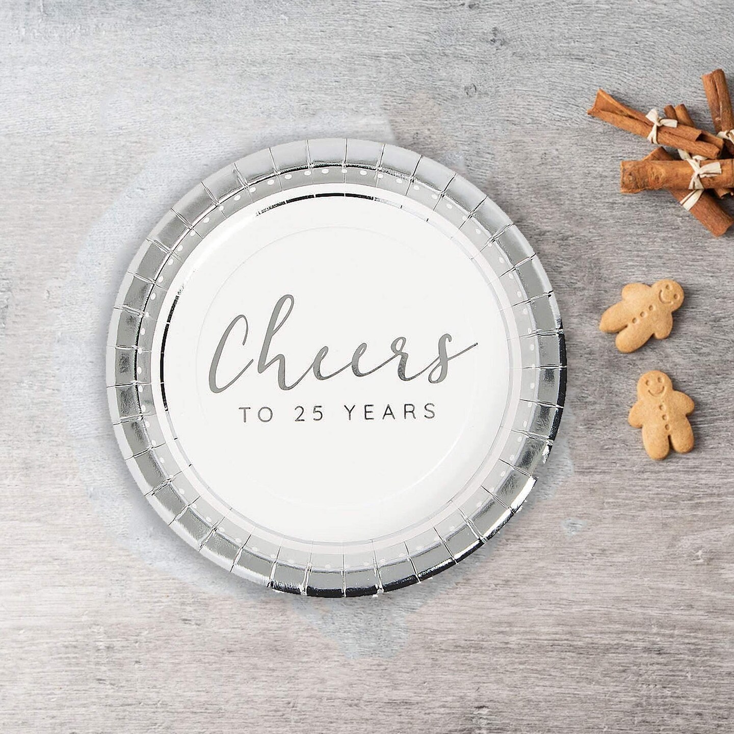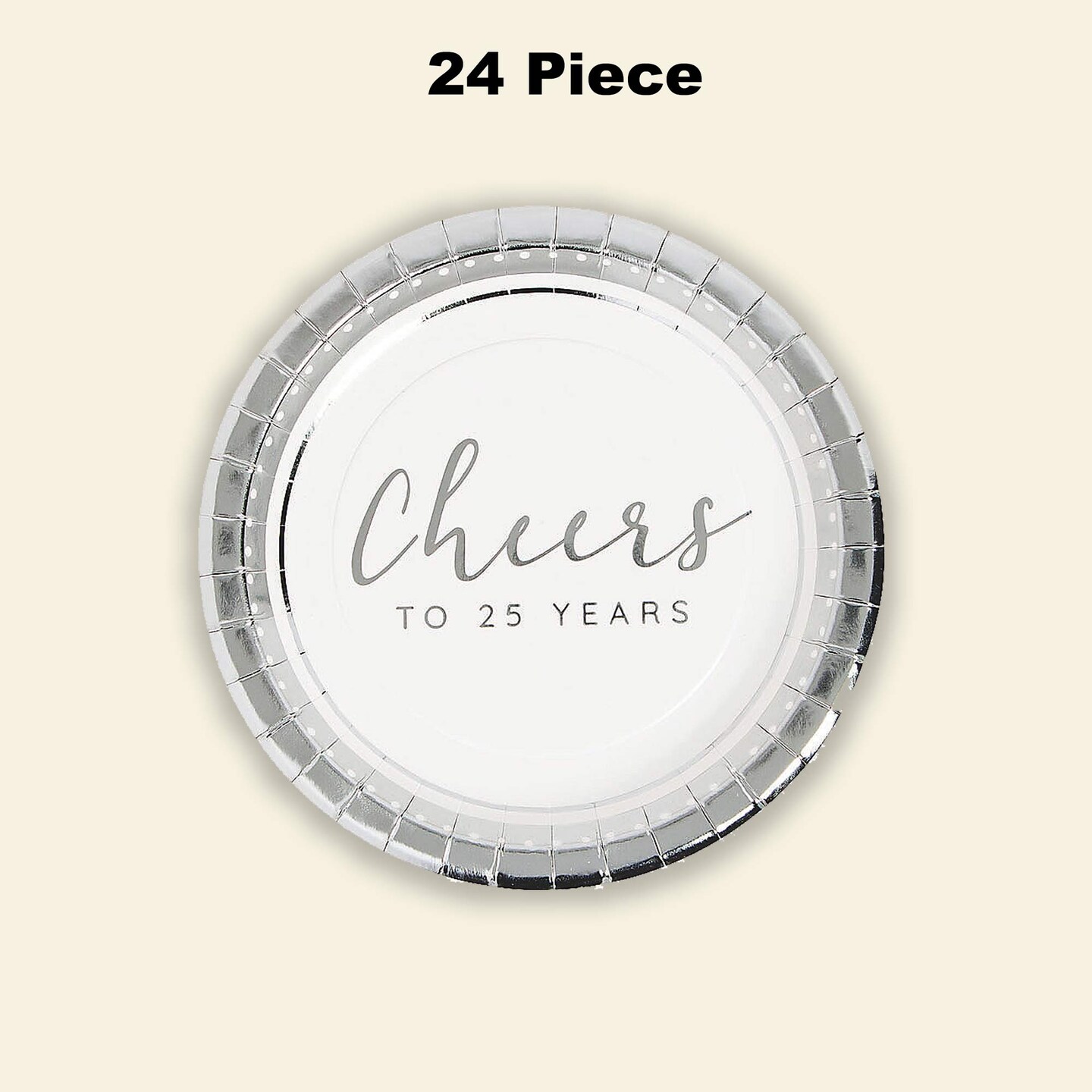 24 Ct Silver Anniversary Paper Dessert Plates 25th Party Supplies Elegant 7"
