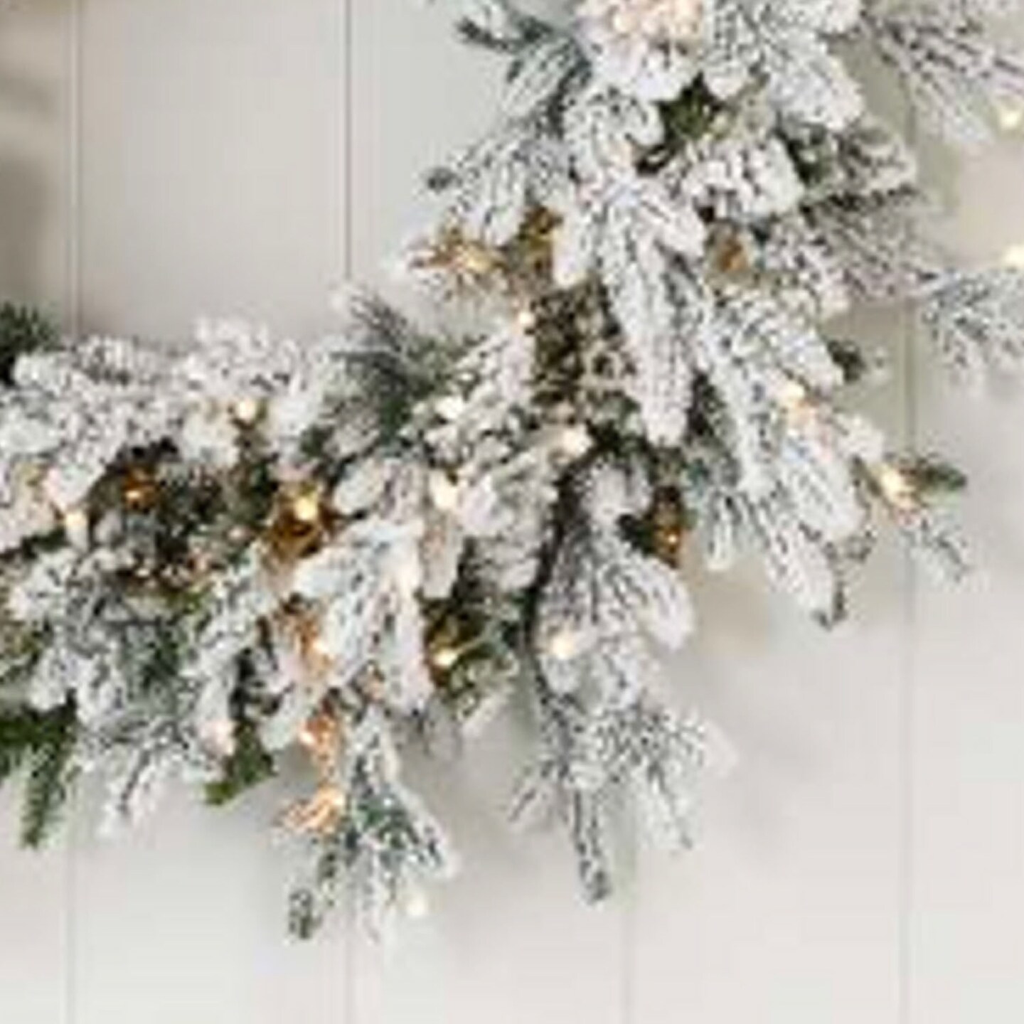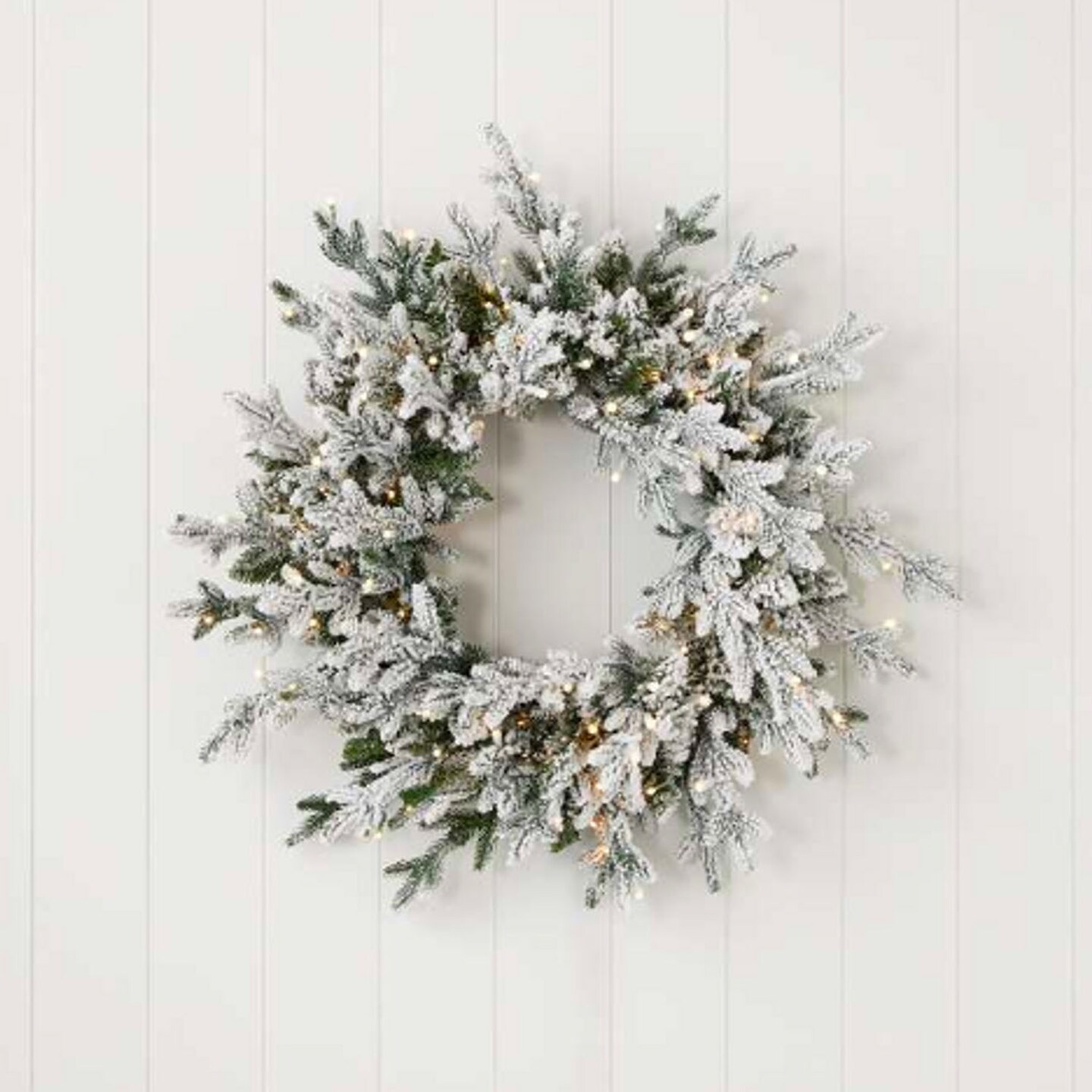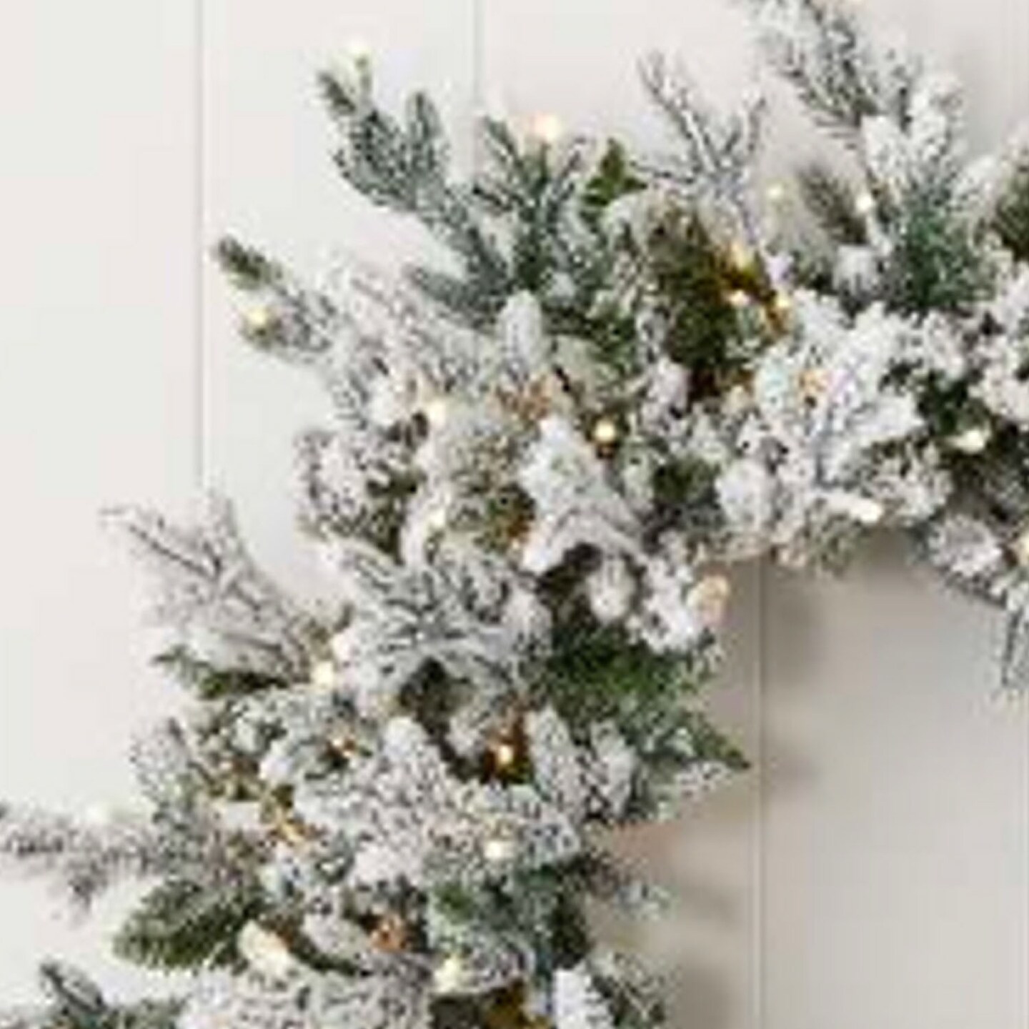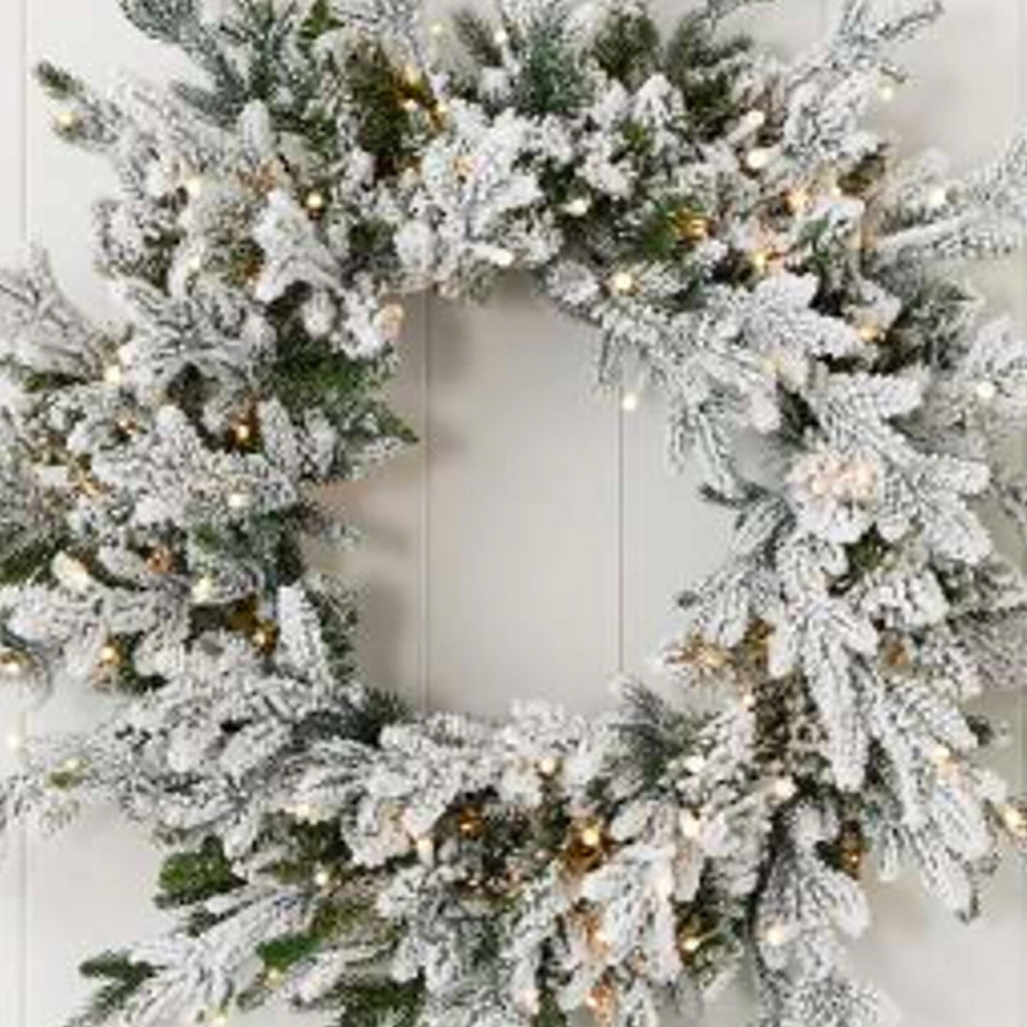 24" Dandan Plug-In Flocked Wreath with Warm White LED Lights Snow-Kissed Glow for the Holidays