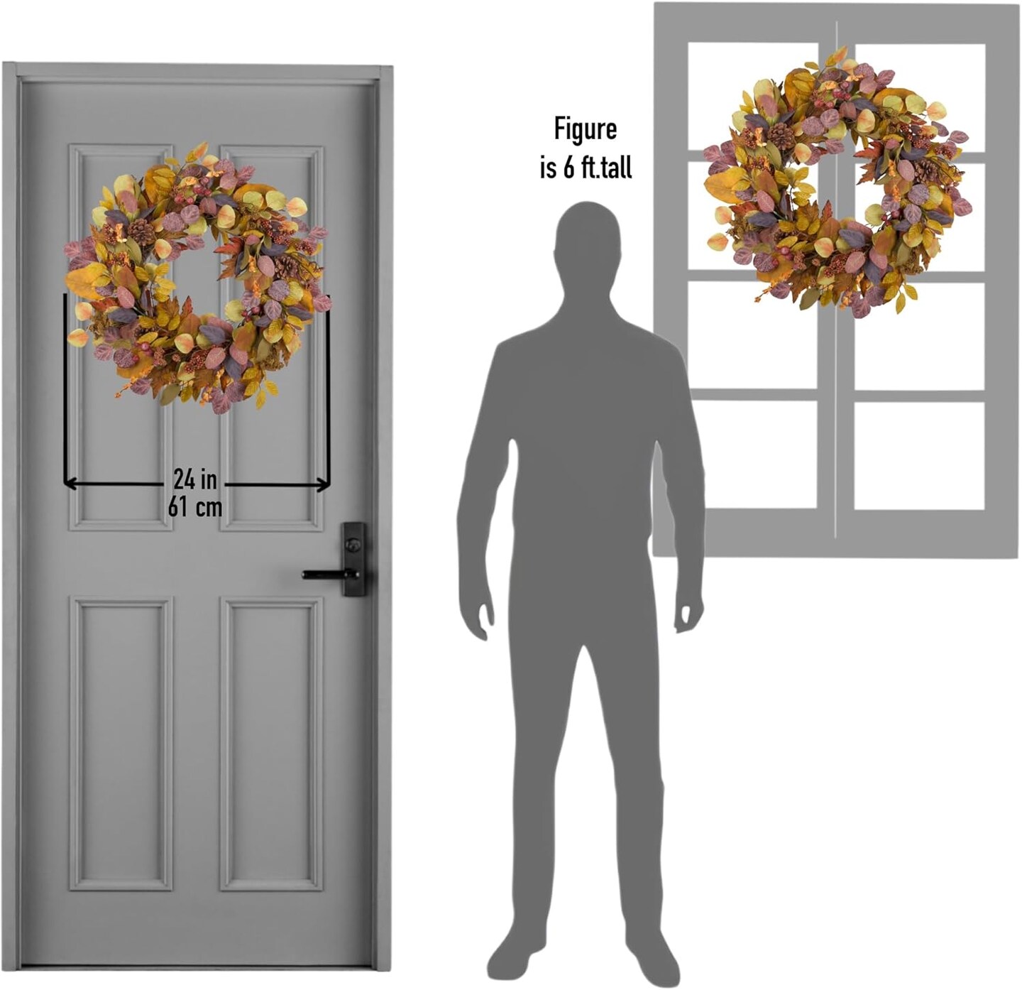 24" Fall Wreath, Handcrafted with Faux Eucalyptus, Magnolia Leaves, Maple Leaves, Berries, Natural Pine Cones, Fall Decoration for Front Door, 2024 New