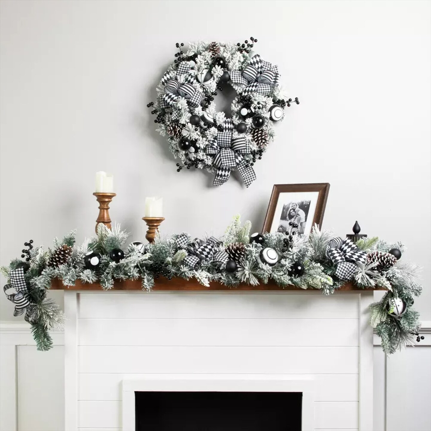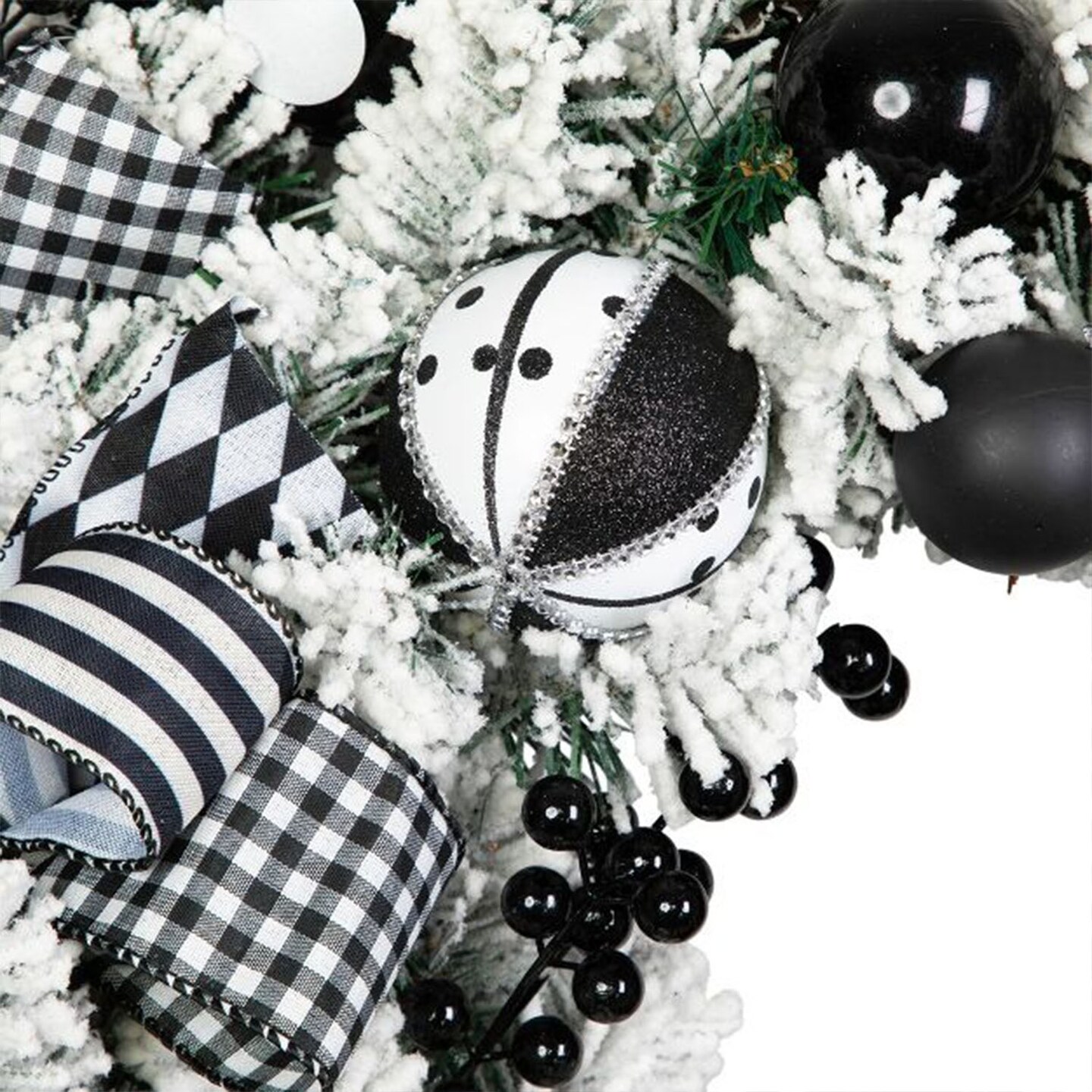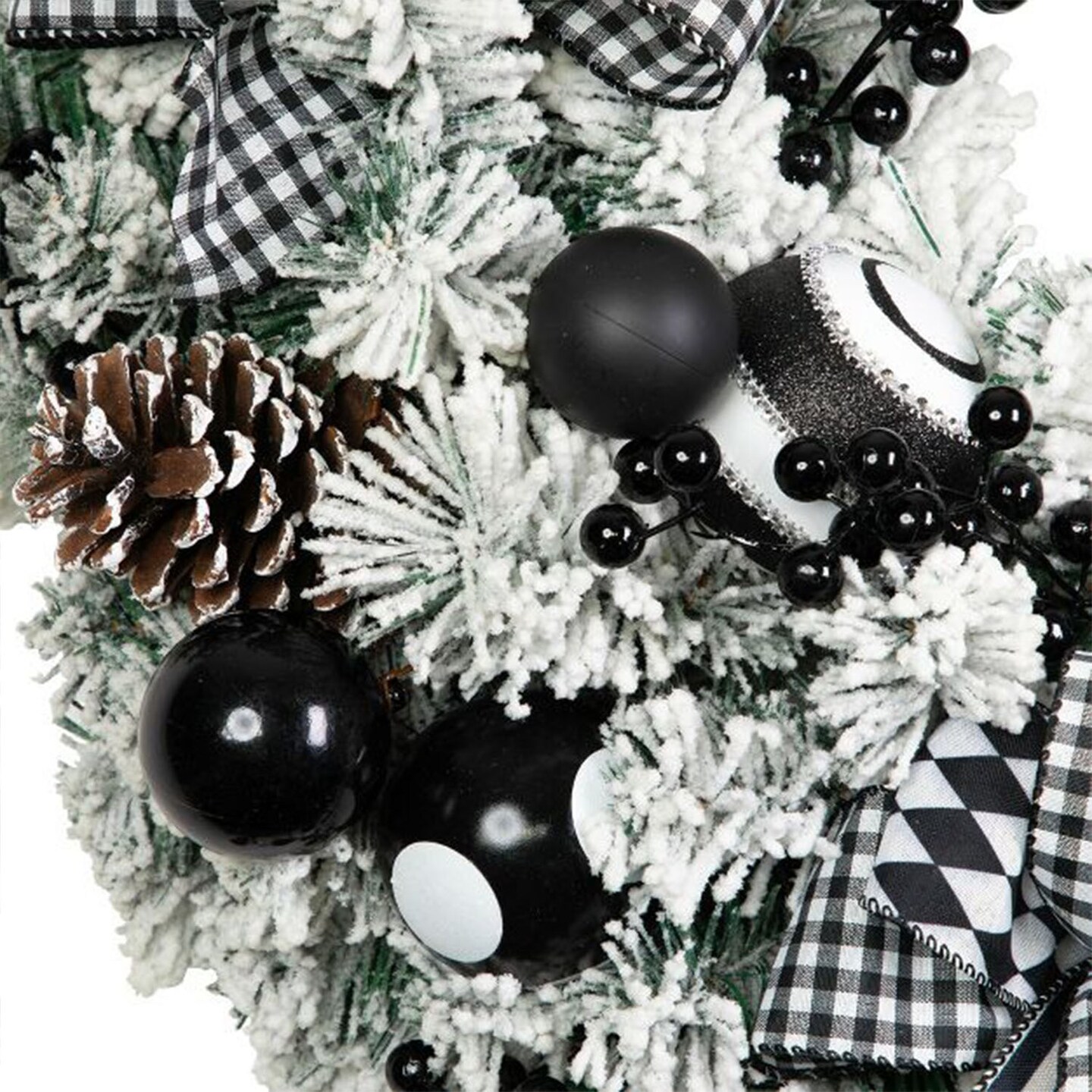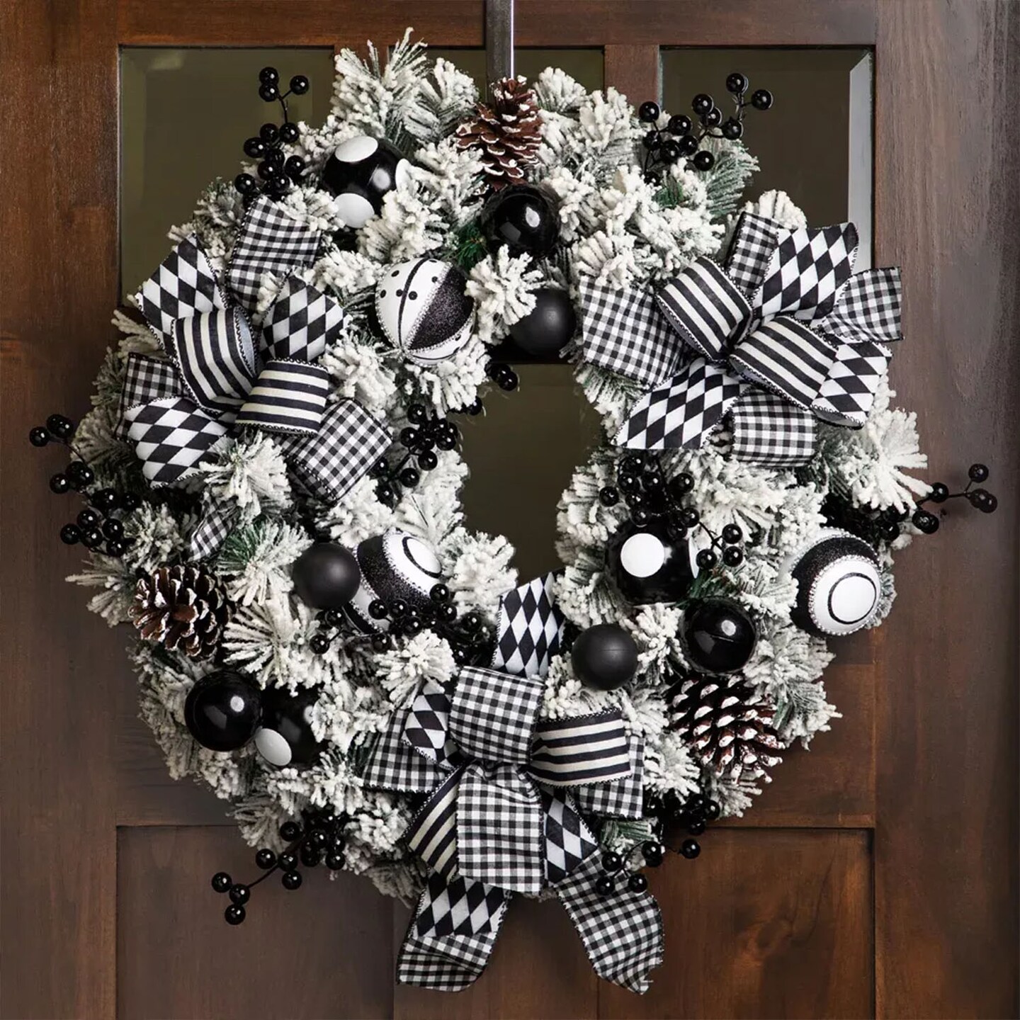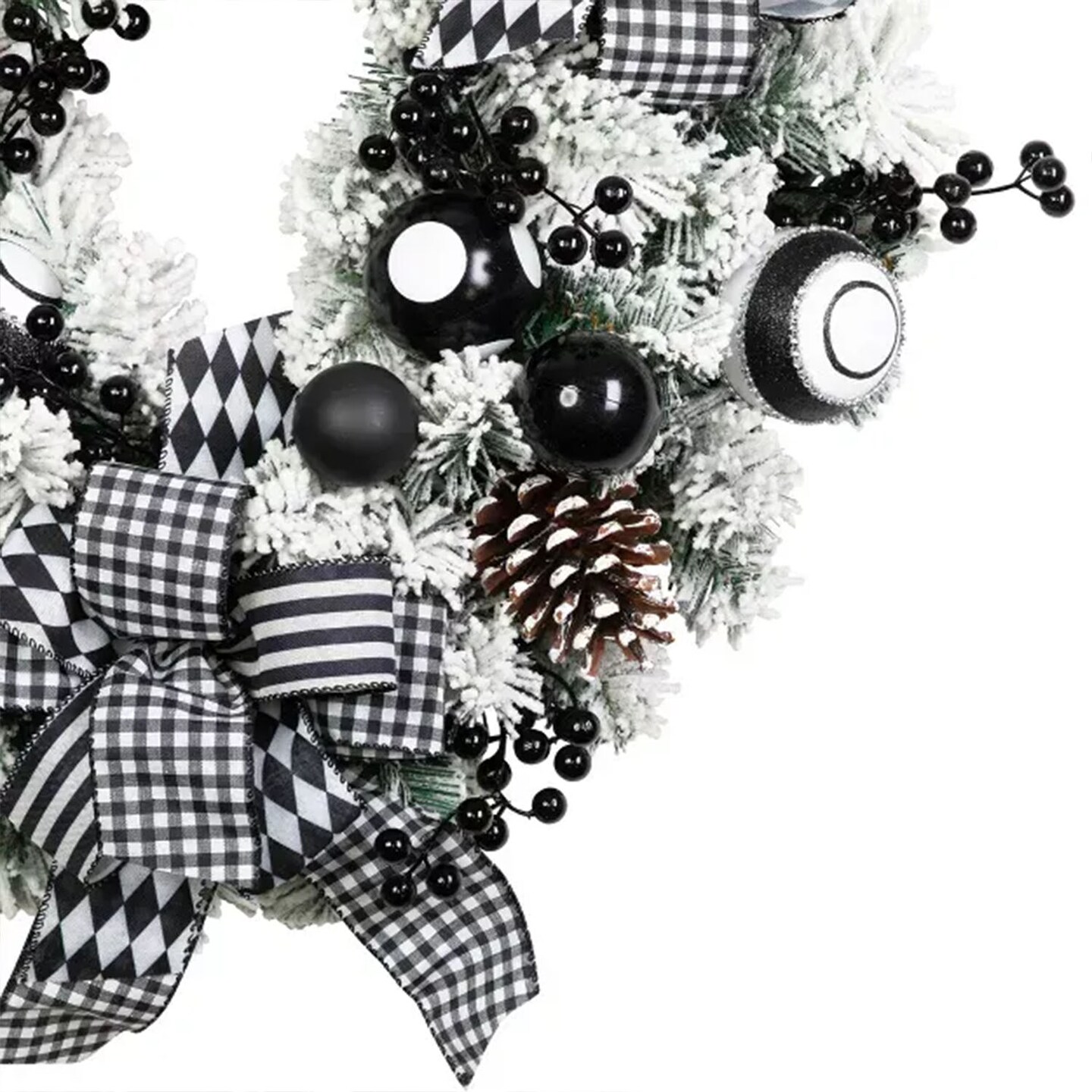 24" Flocked Pine Christmas Wreath with Harlequin Bows