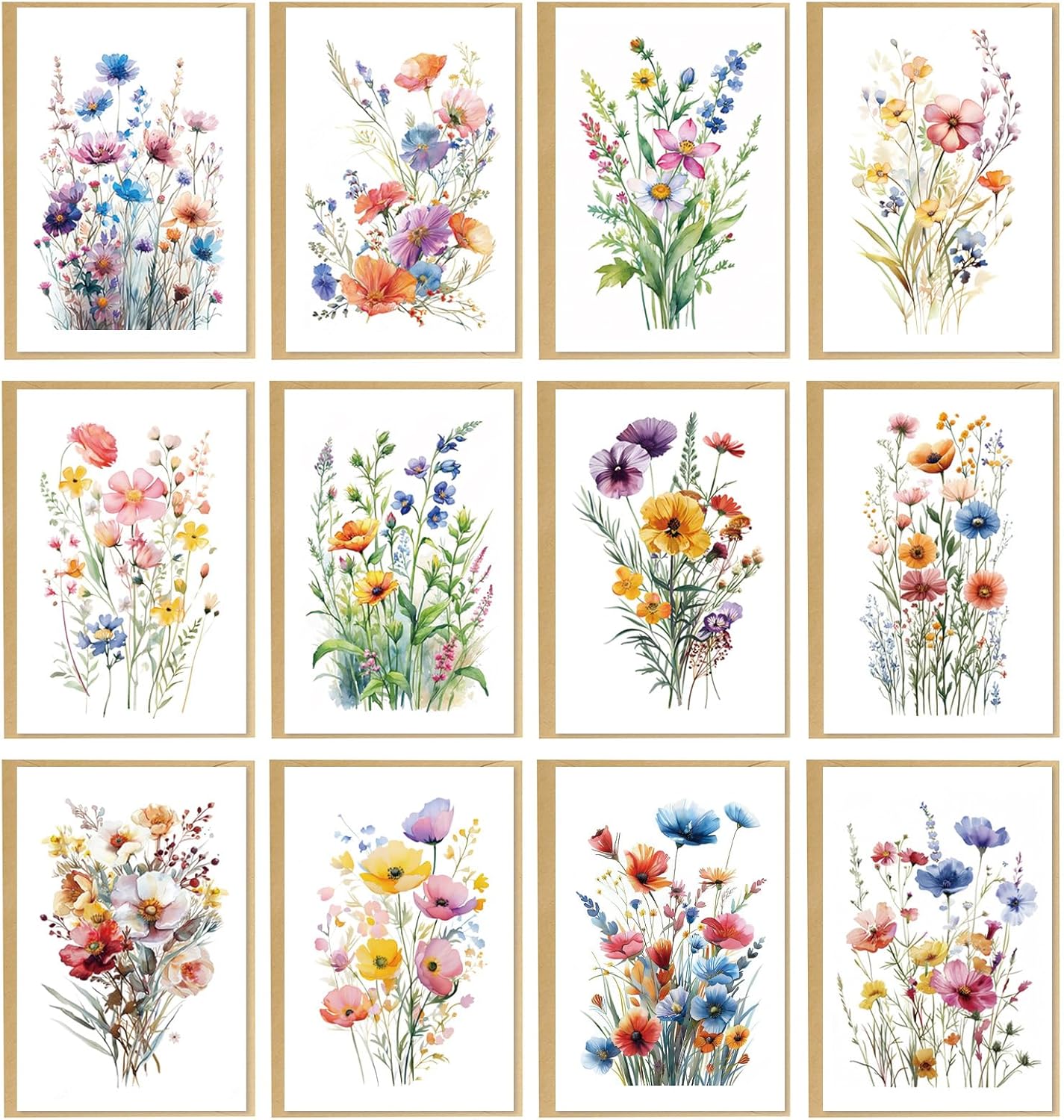 24 Floral Blank Cards and Envelopes, 4x6 Wildflower Blank Note Cards for All Occasions - Sympathy Thank You Condolences Funeral Thinking of You Mother's Day Wedding Graduation, Etc