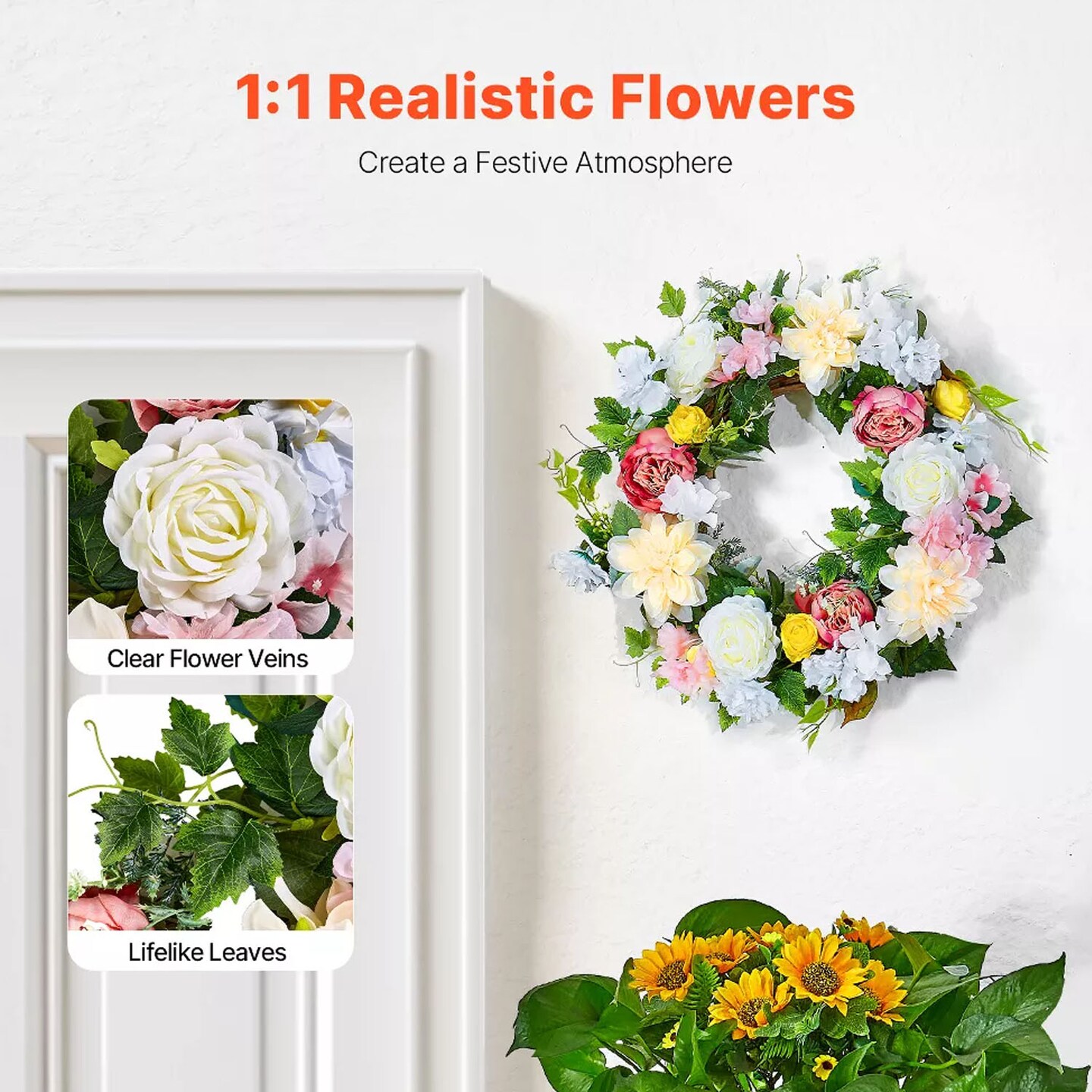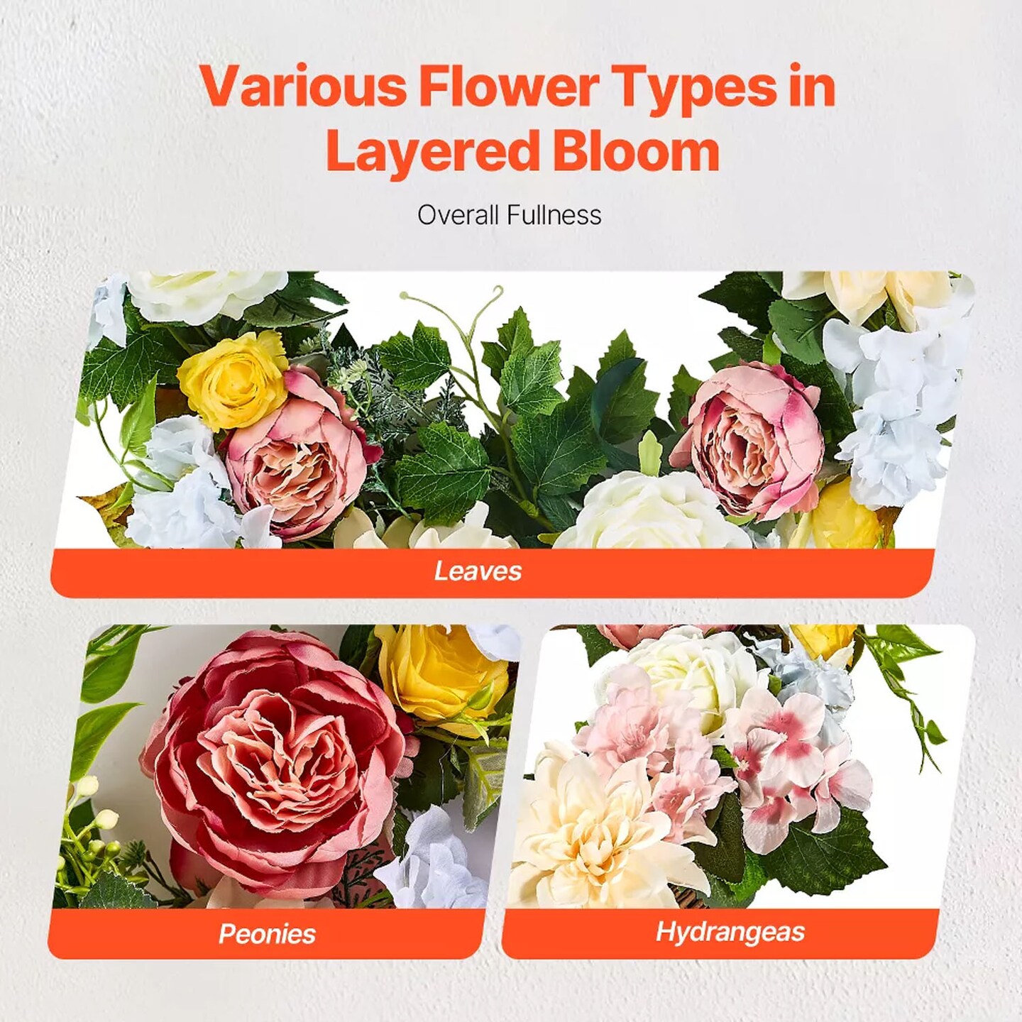 24" Floral Wreath with Peonies and Hydrangeas Year-Round Pink White & Yellow Decor