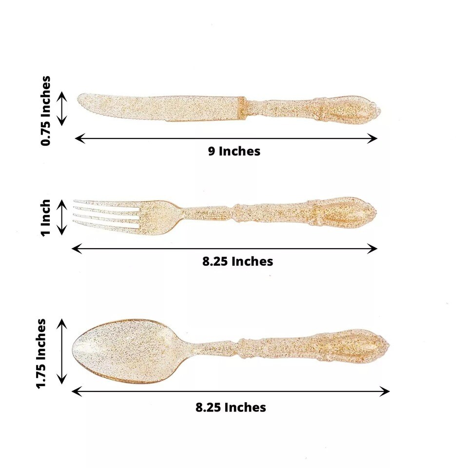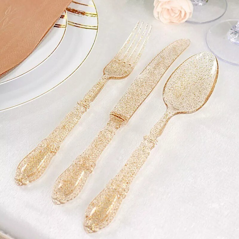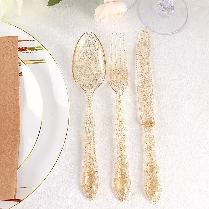 24 Gold Glittered Clear Heavy Duty Plastic Cutlery Party Events Home Tableware