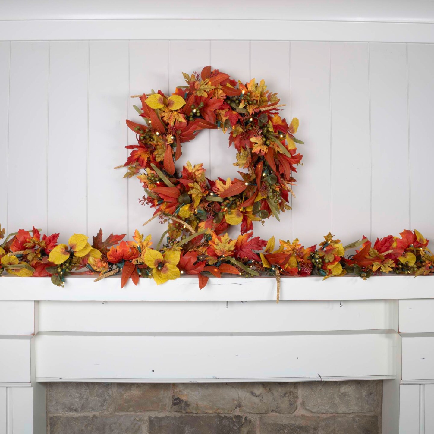 24 in. Holiday Wreath with Lights - Fall Harvest Leaf