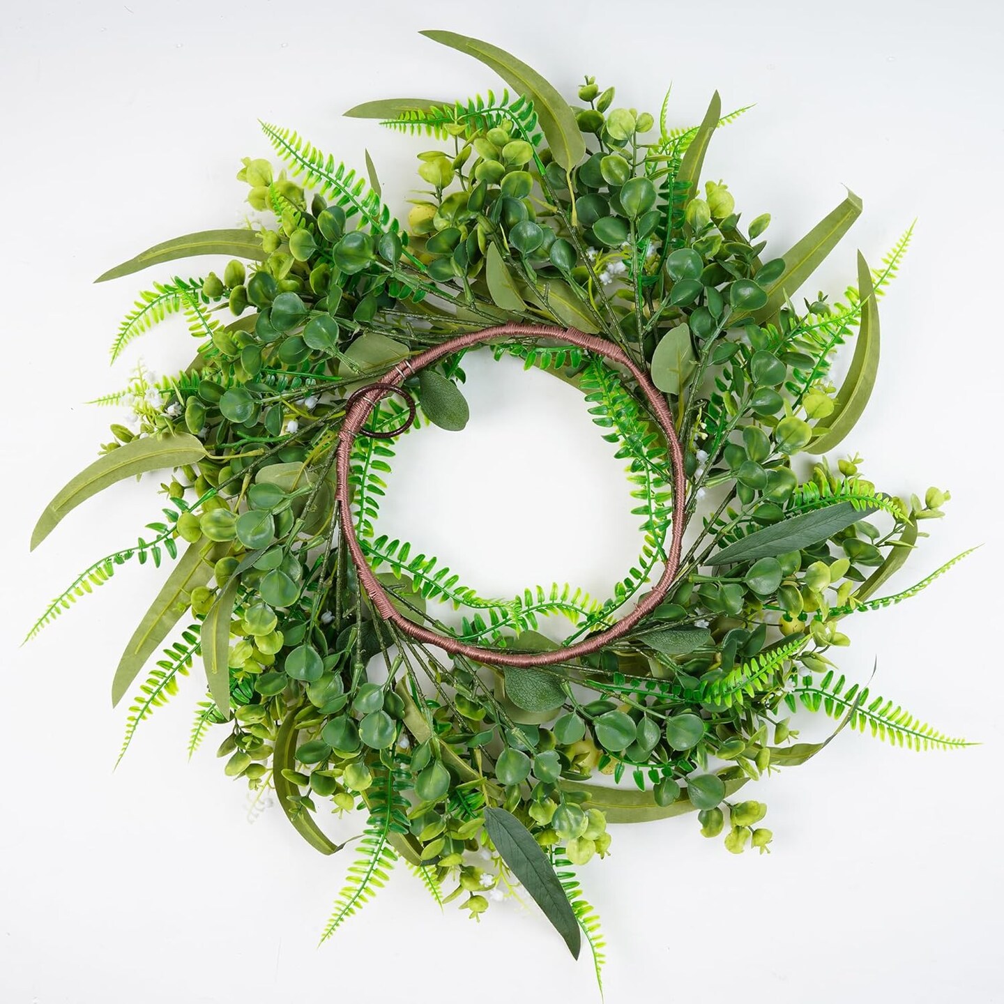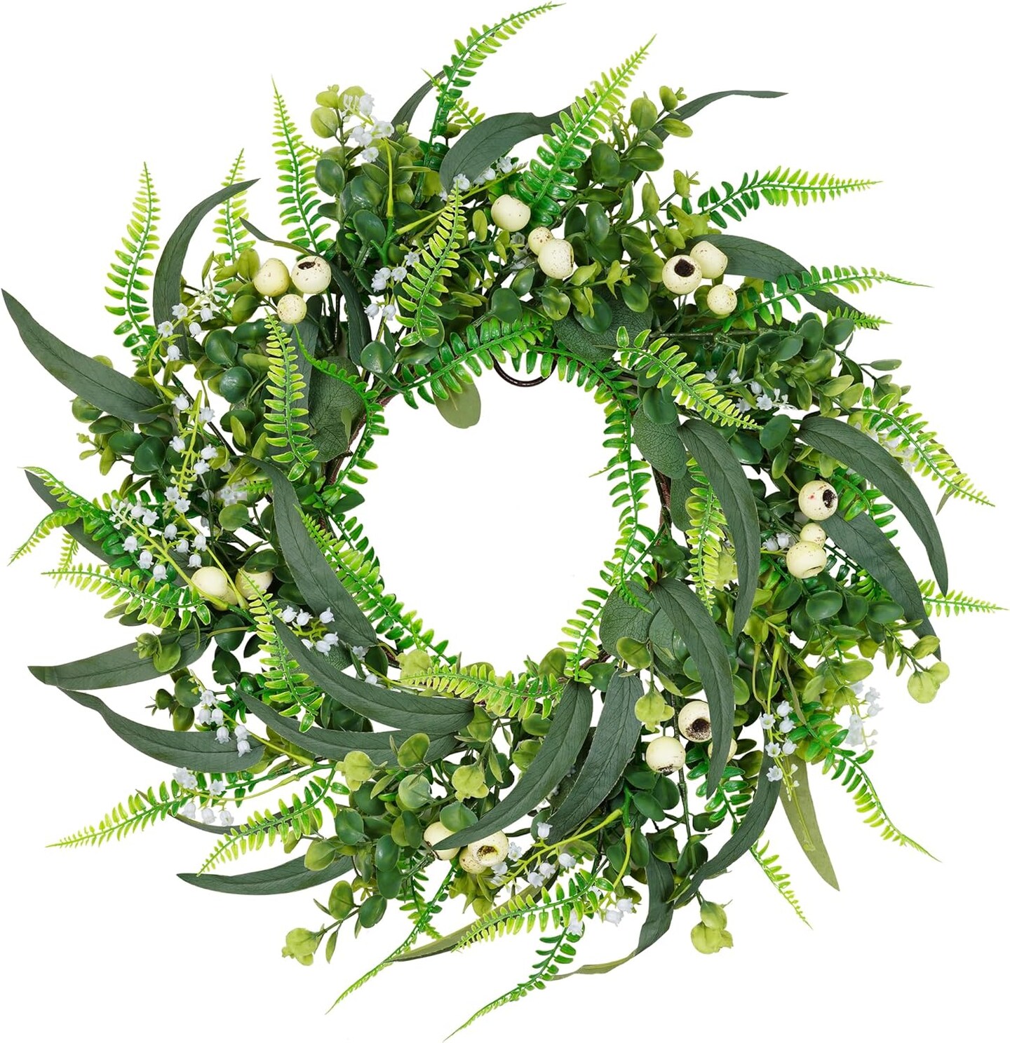 24 inch Boxwood Berry Wreath for Front Door, Green Summer Wreath with Big White Berries and Eucalyptus Leaves for Outside Wall Window Farmhouse