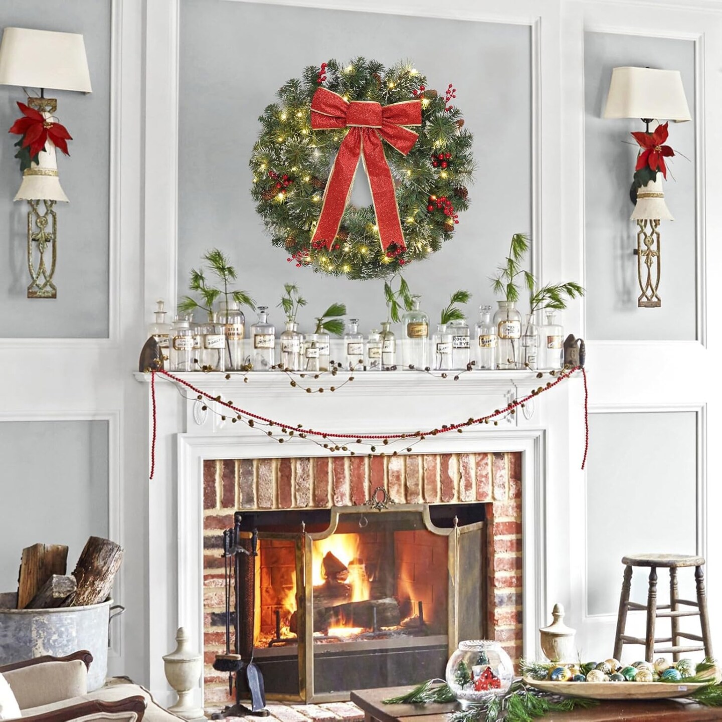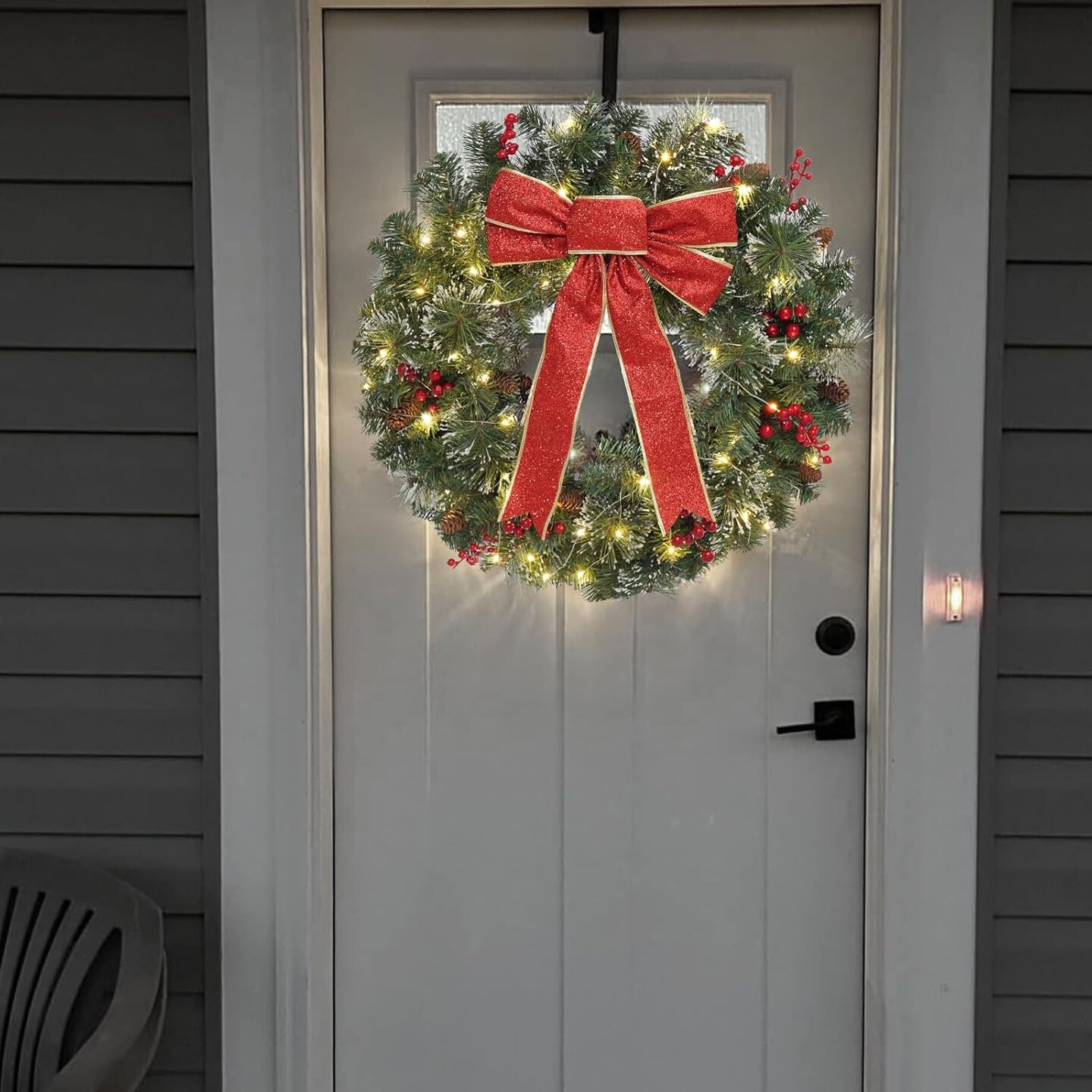 24 Inch Pre-Lit Outdoor Wreath - Battery Operated (Green) 5"D x 24"W x 24"H