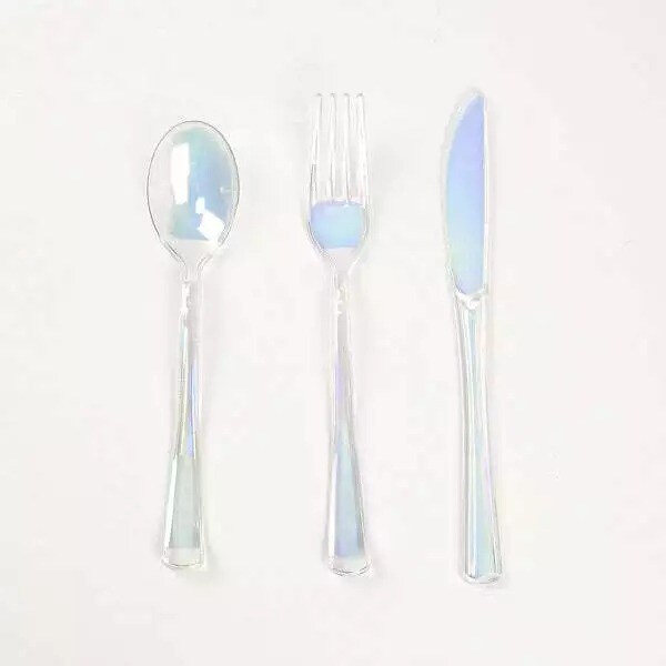 24 Iridescent Plastic Cutlery Spoon Fork Knife Set Disposable Tableware Party