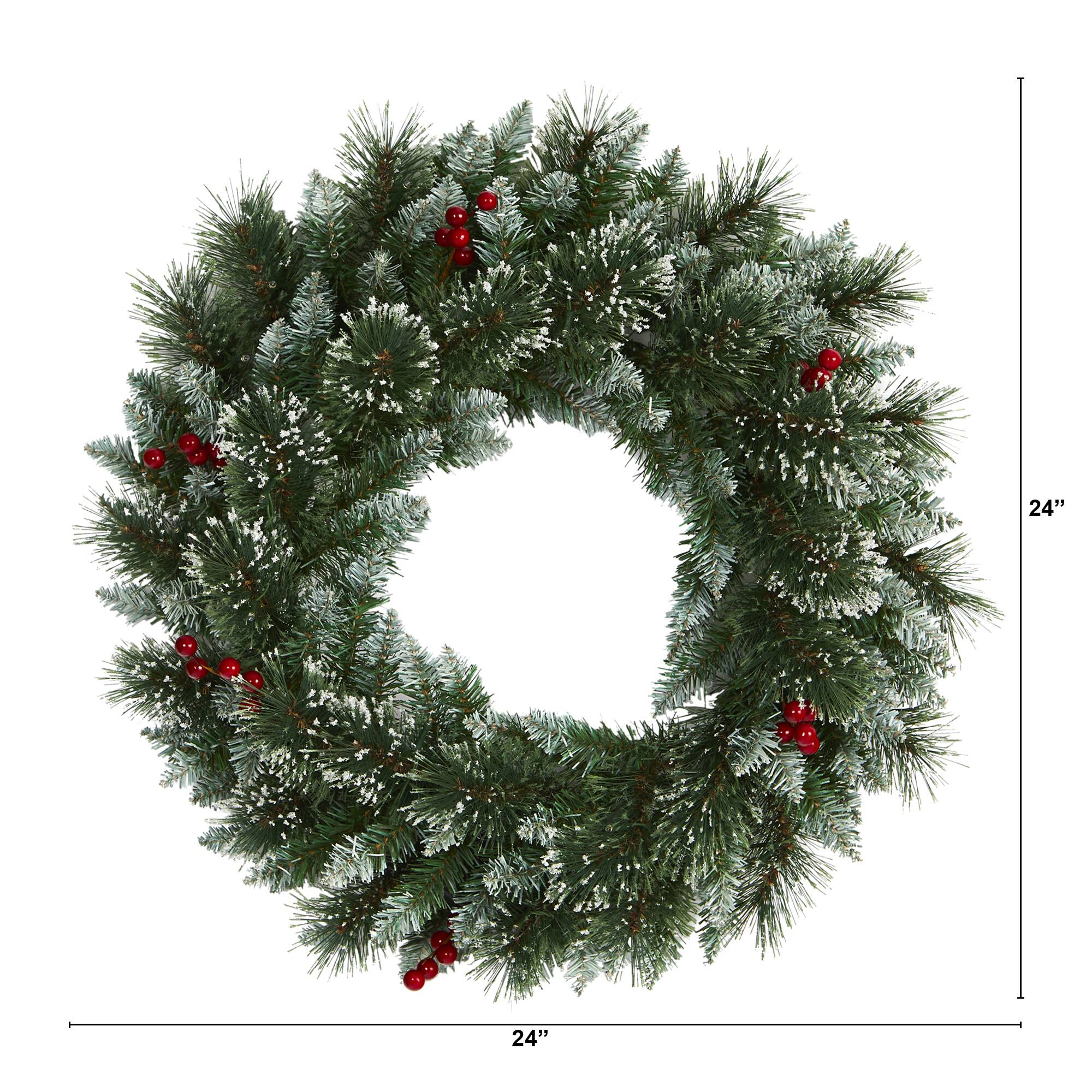 24" LED Frosted Swiss Pine & Berry Artificial Wreath