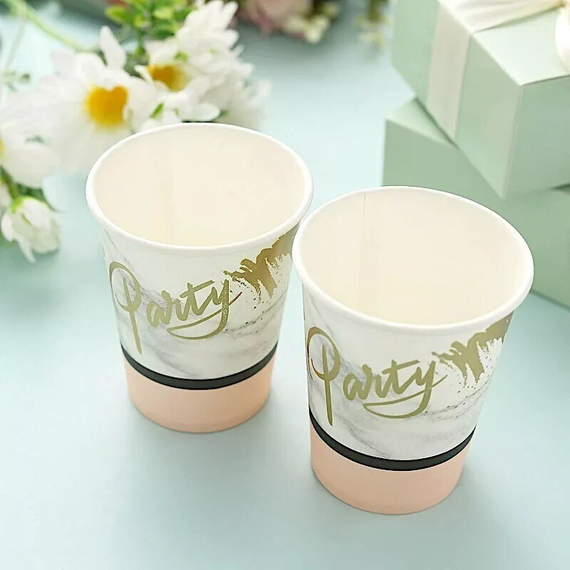24 Marble 9 oz White Blush All Purpose Paper Cups Party Decorations Supplies