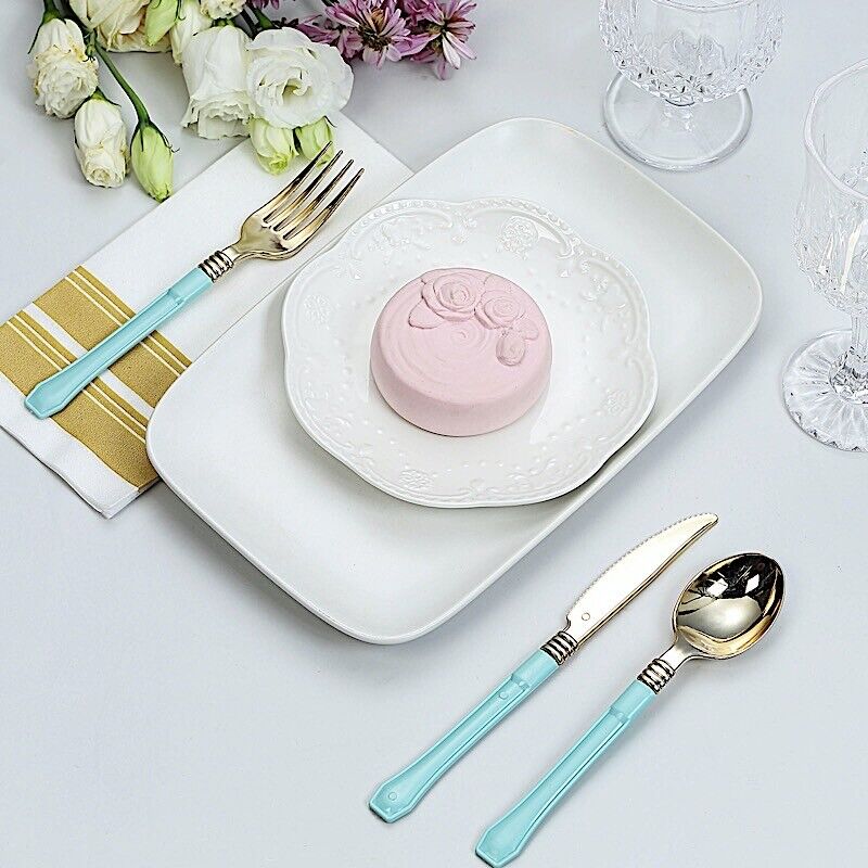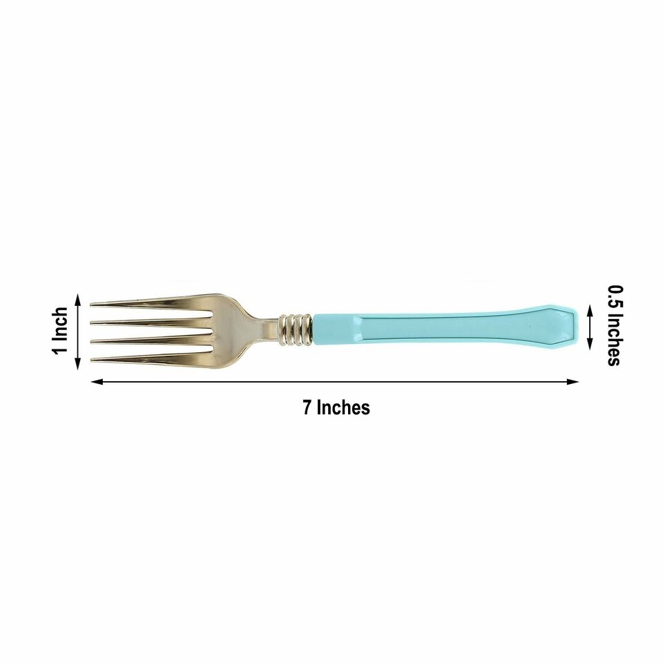 24 Metallic Gold Blue 7" Forks Plastic Handle Disposable Party