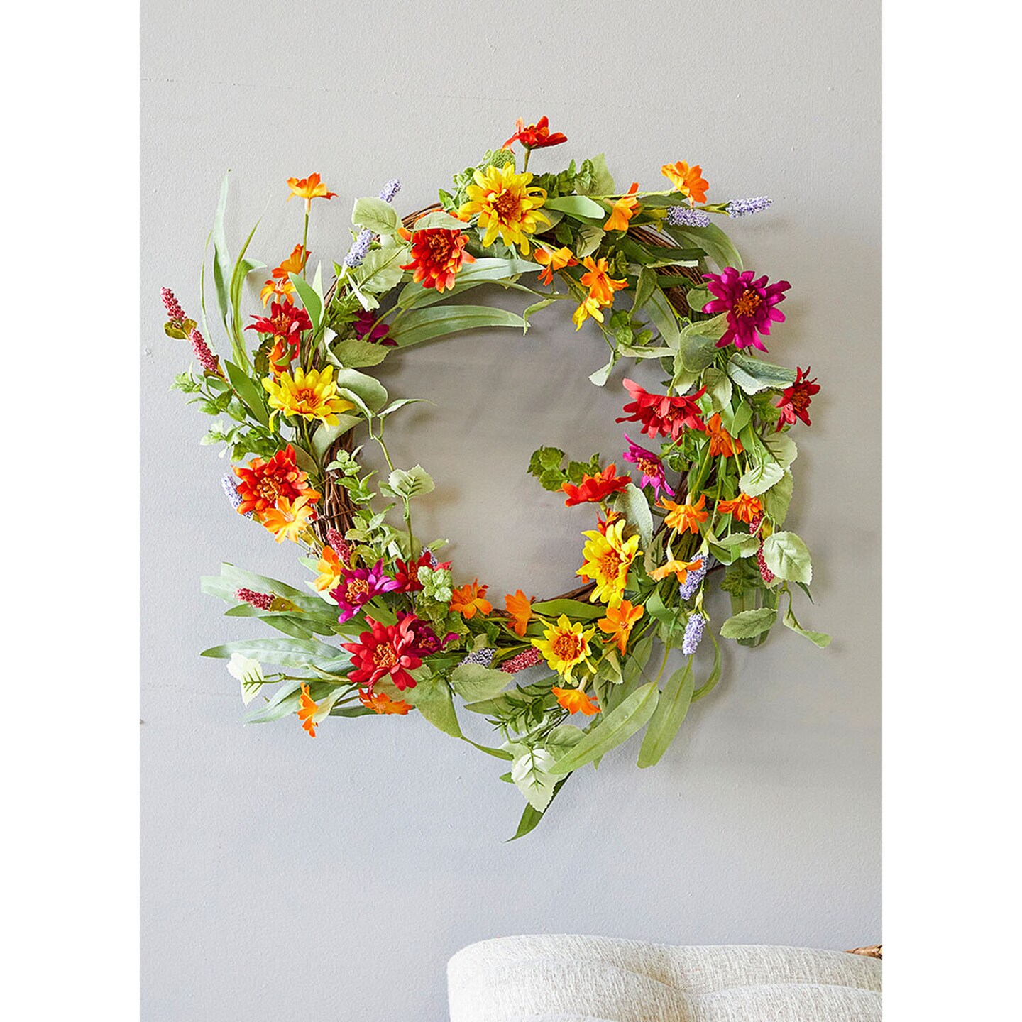 24" Mixed Daisy Wreath Bright & Cheerful Floral Wreath for Spring & Summer Decor