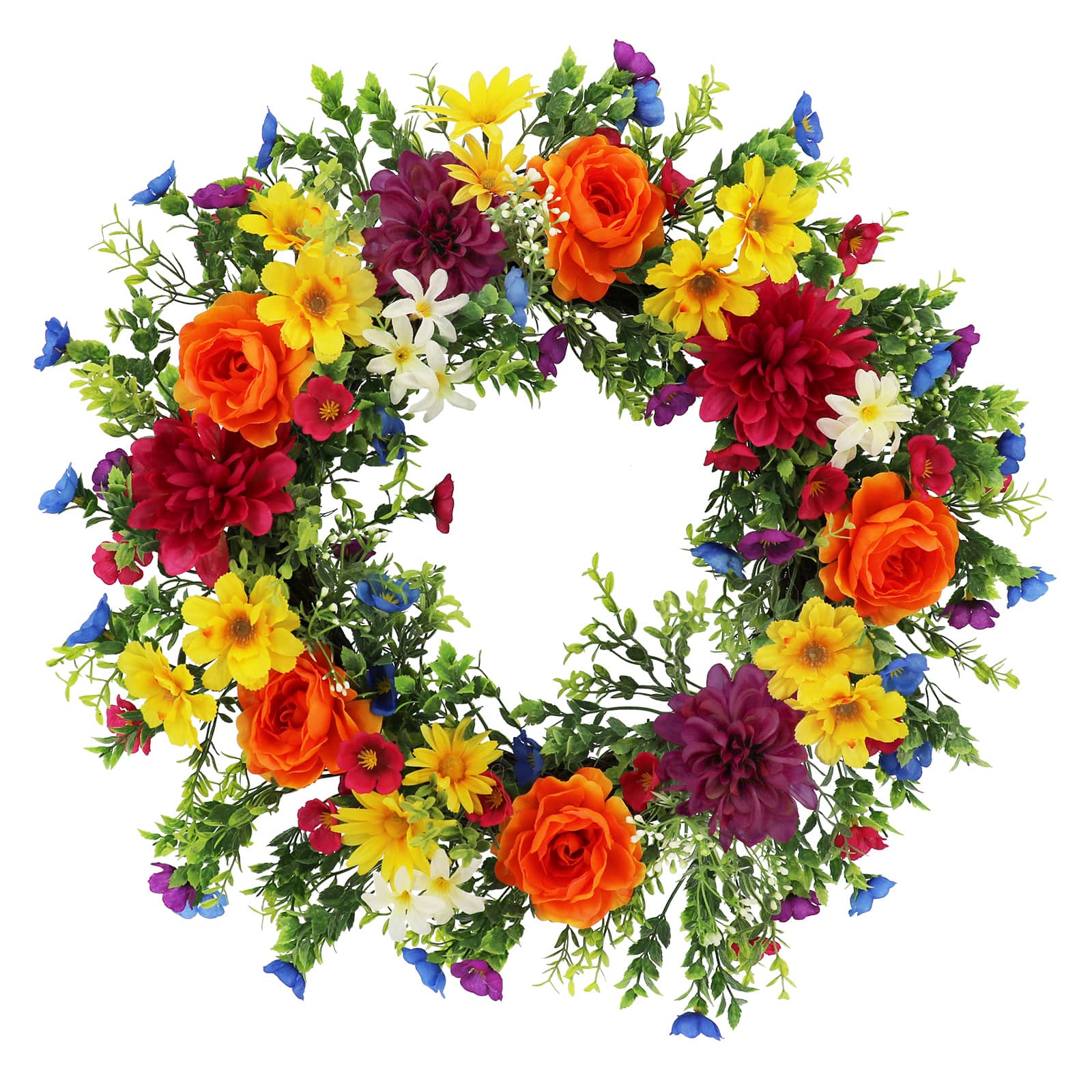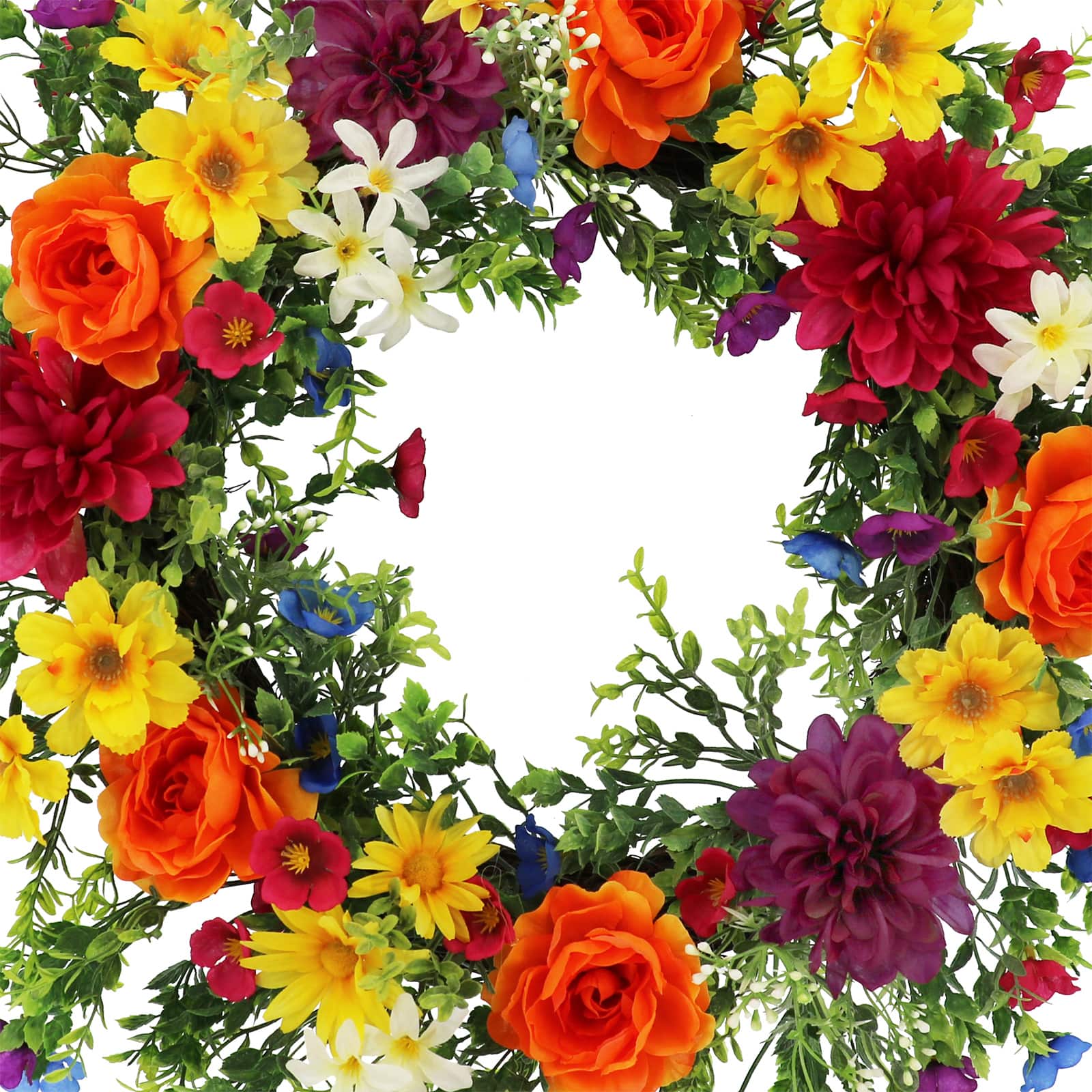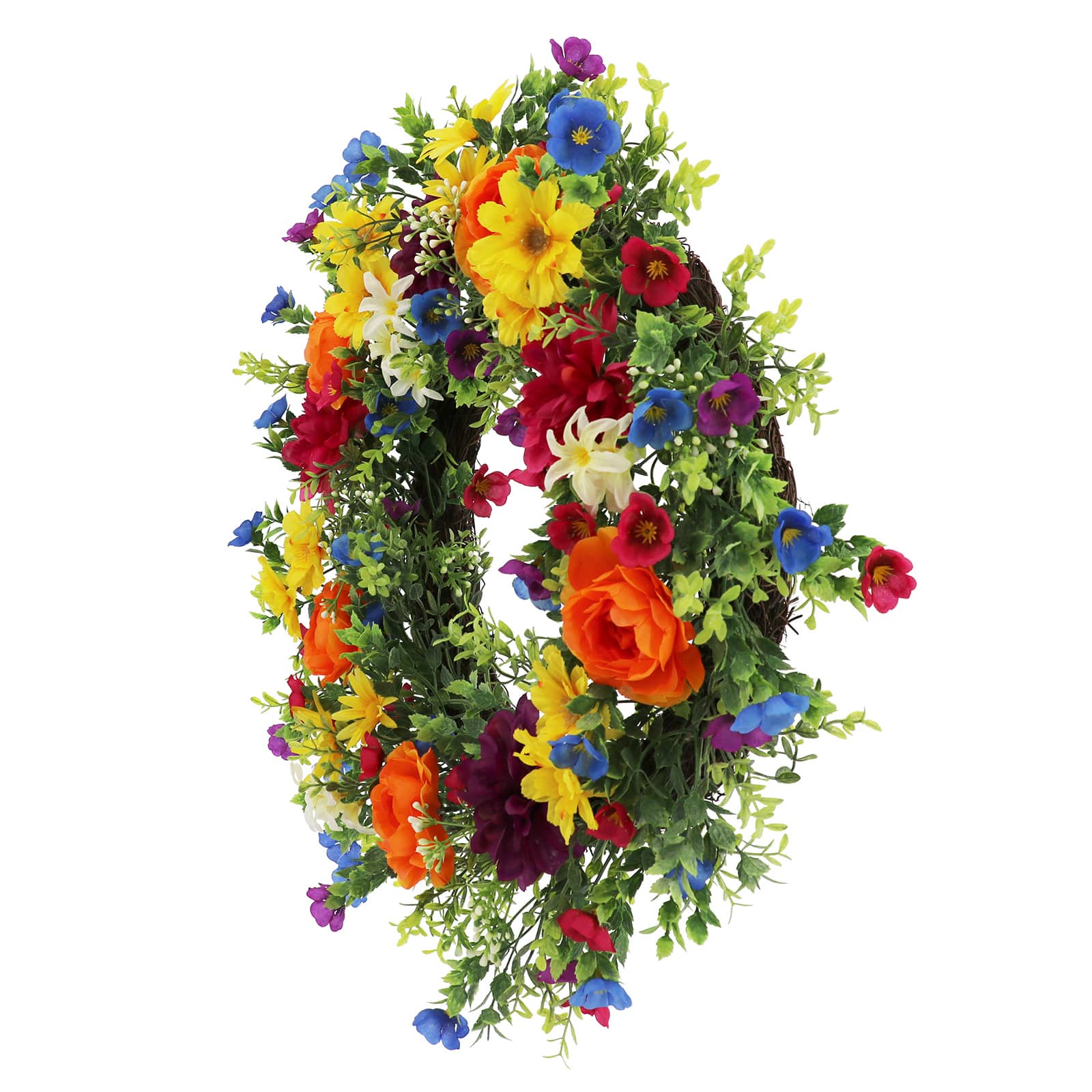 24" Orange & Yellow Ranunculus & Boxwood Wreath by Ashland®