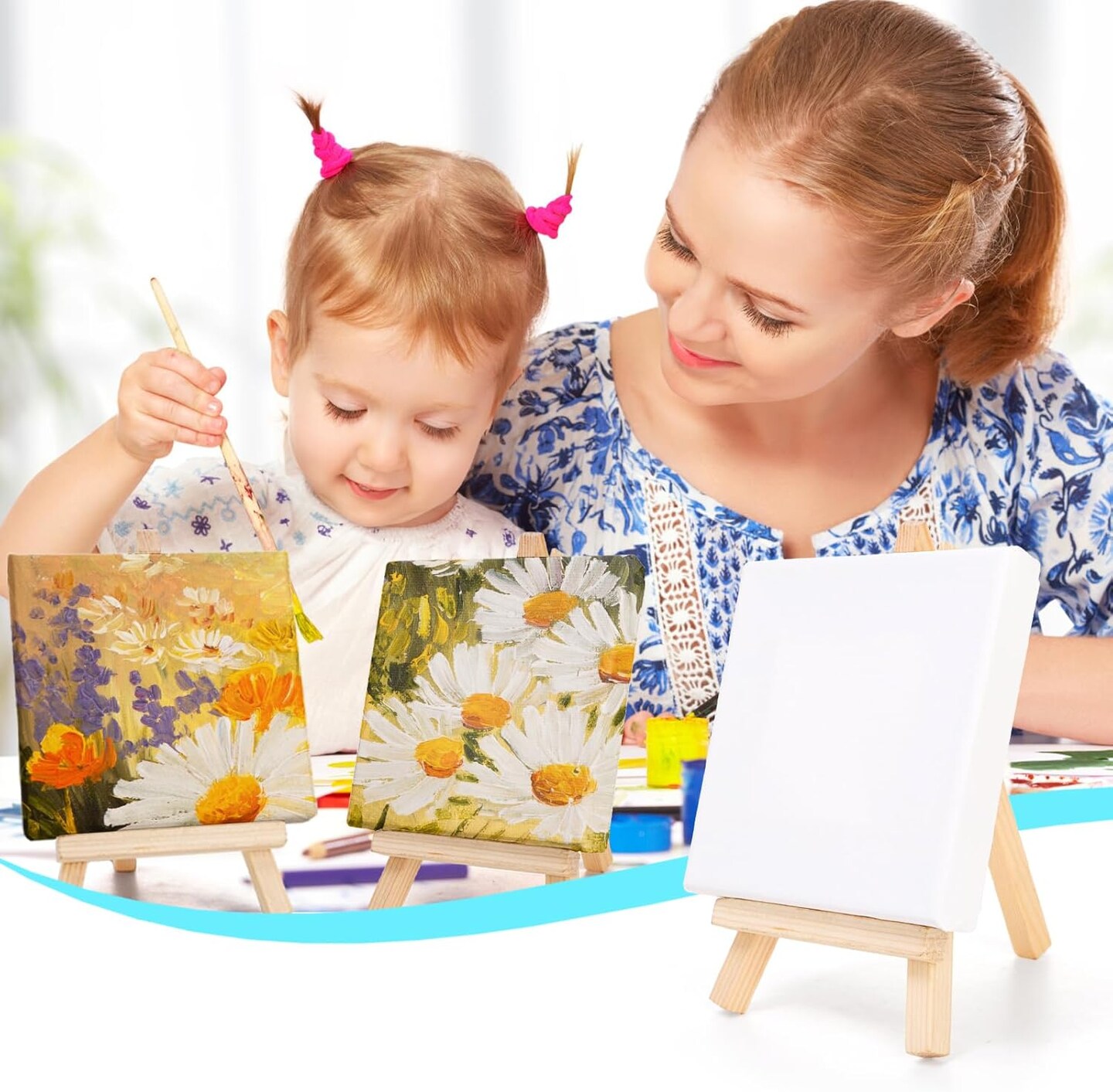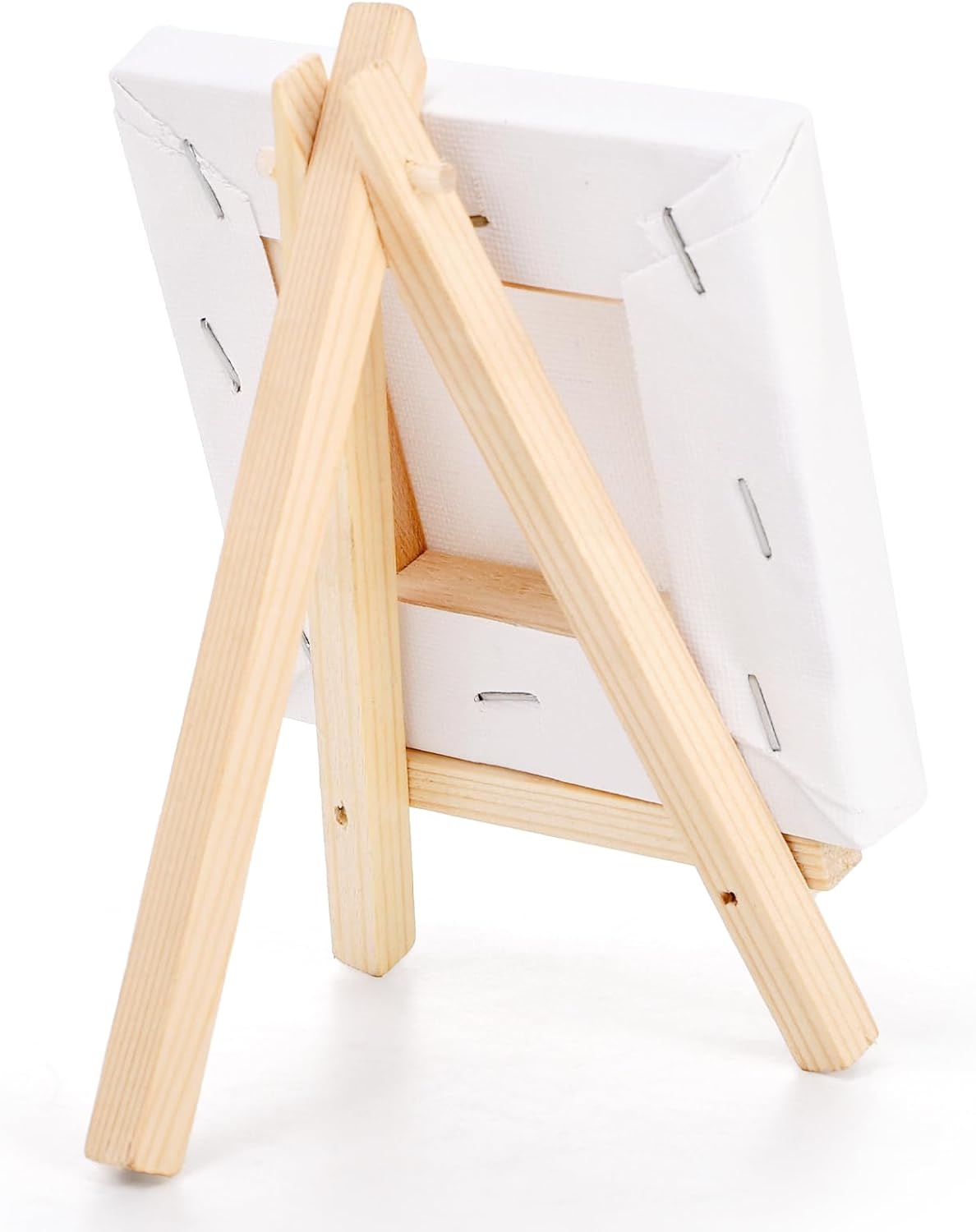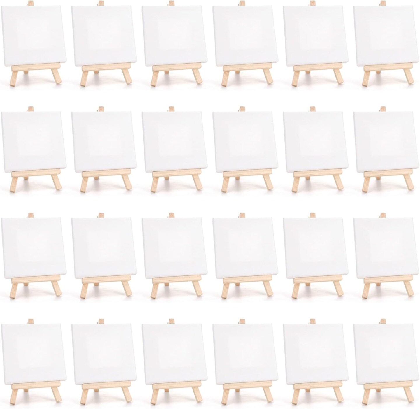 24 Pack 4" x 4" Mini Canvas and Easel Set (White)