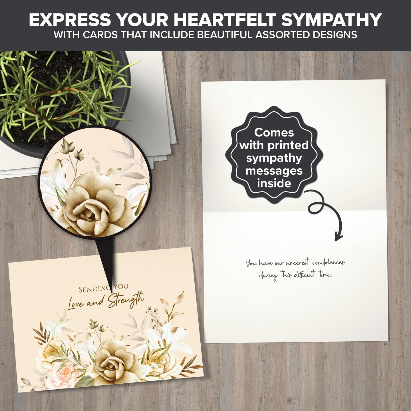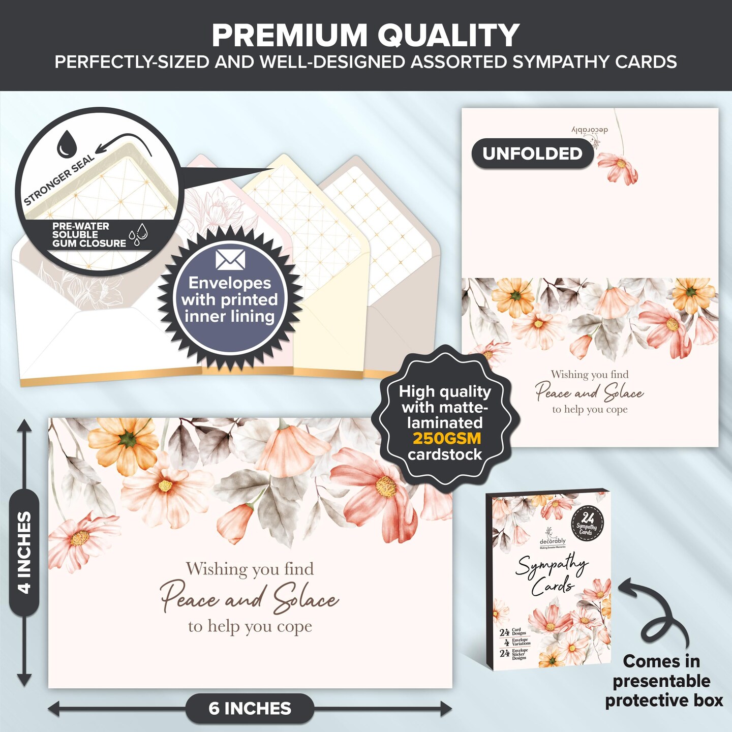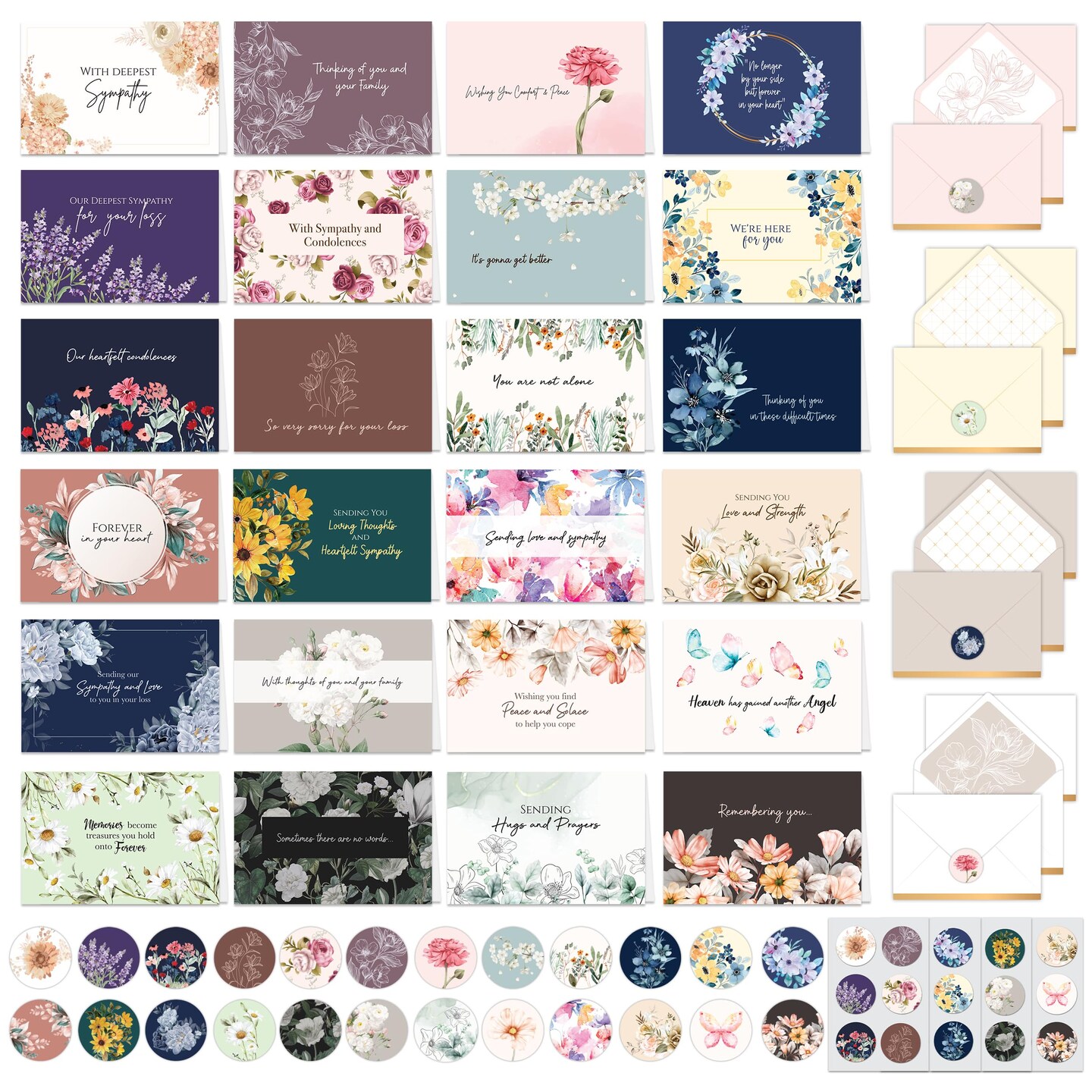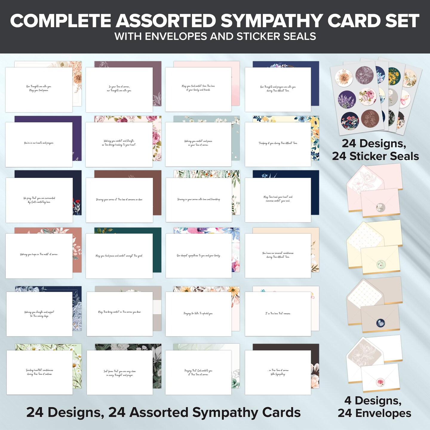24 Pack 6x4in Assorted Sympathy Cards with Envelopes and Stickers, 24 Unique Designs Sympathy Cards Assortment Box with Envelopes with Printed Message Inside - Bereavement, Condolences