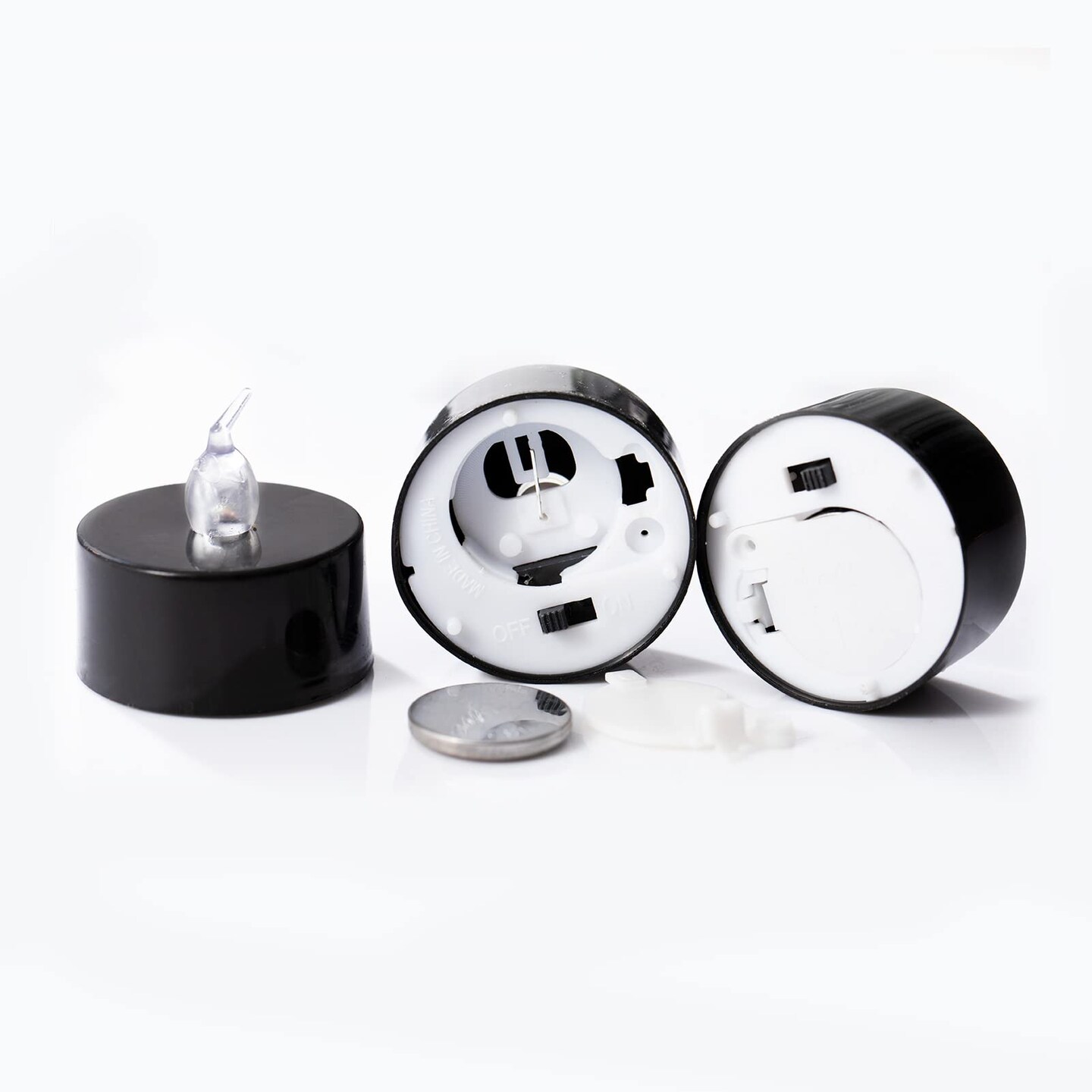 24 Pack Black Tea Lights Candles, Flickering Warm Yellow Flameless LED Tealights, Long Lasting Battery Operated Fake Candles, Decoration for Wedding, Halloween and Christmas