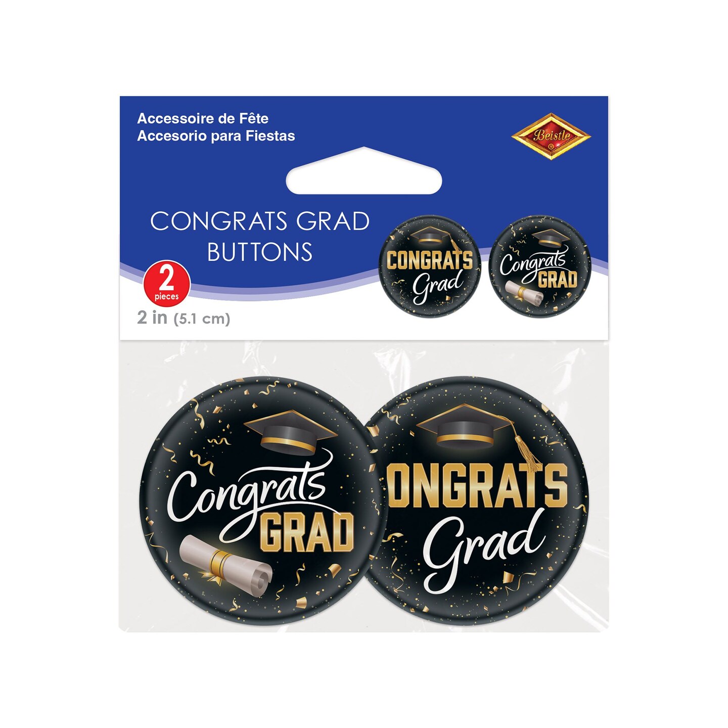 24 Pack Bulk Congrats Grad Buttons 2-inch Graduation Pins