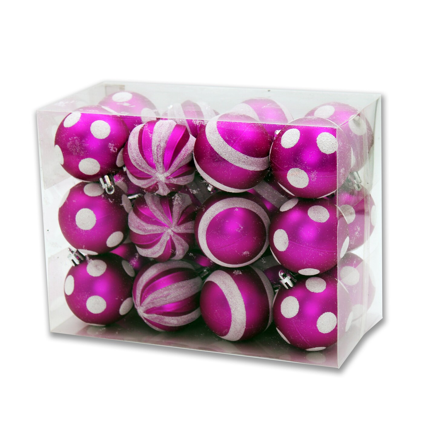 24 Pack Hot Pink Line Design Ball Ornaments