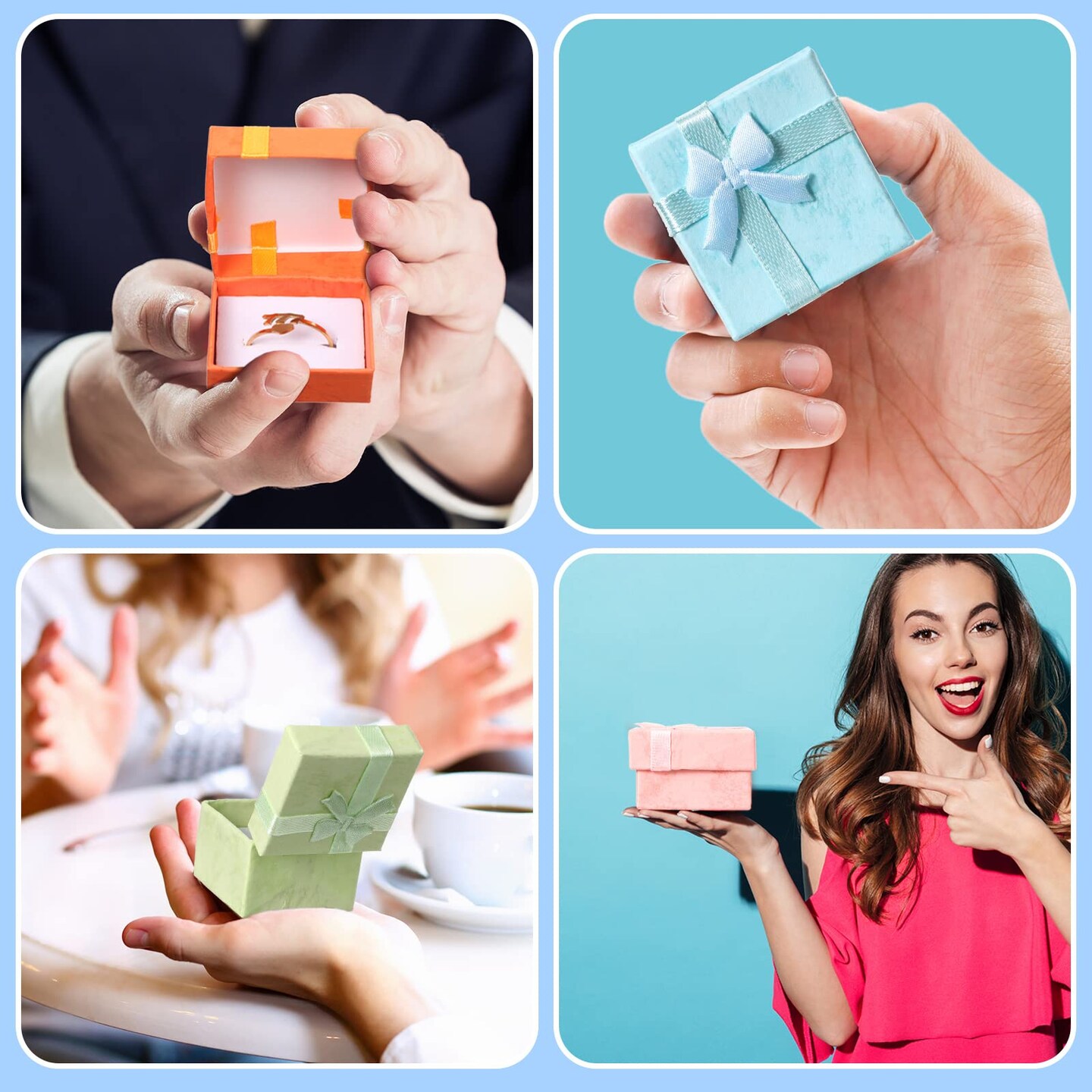 24 Pack Jewelry Gift Boxes Jewelry Box Gift Cases Cotton Filled Cardboard Paper Jewelry Box Bracelets Bangle Necklace Gift Case with Ribbon Bow for Birthday Wedding (1.6 x 1.6 Inches), 12 Color