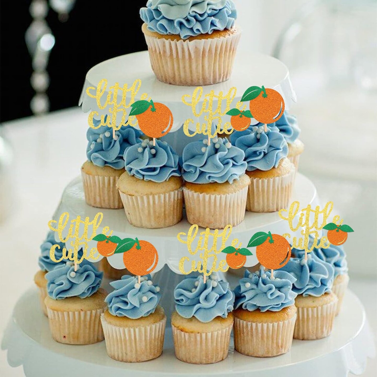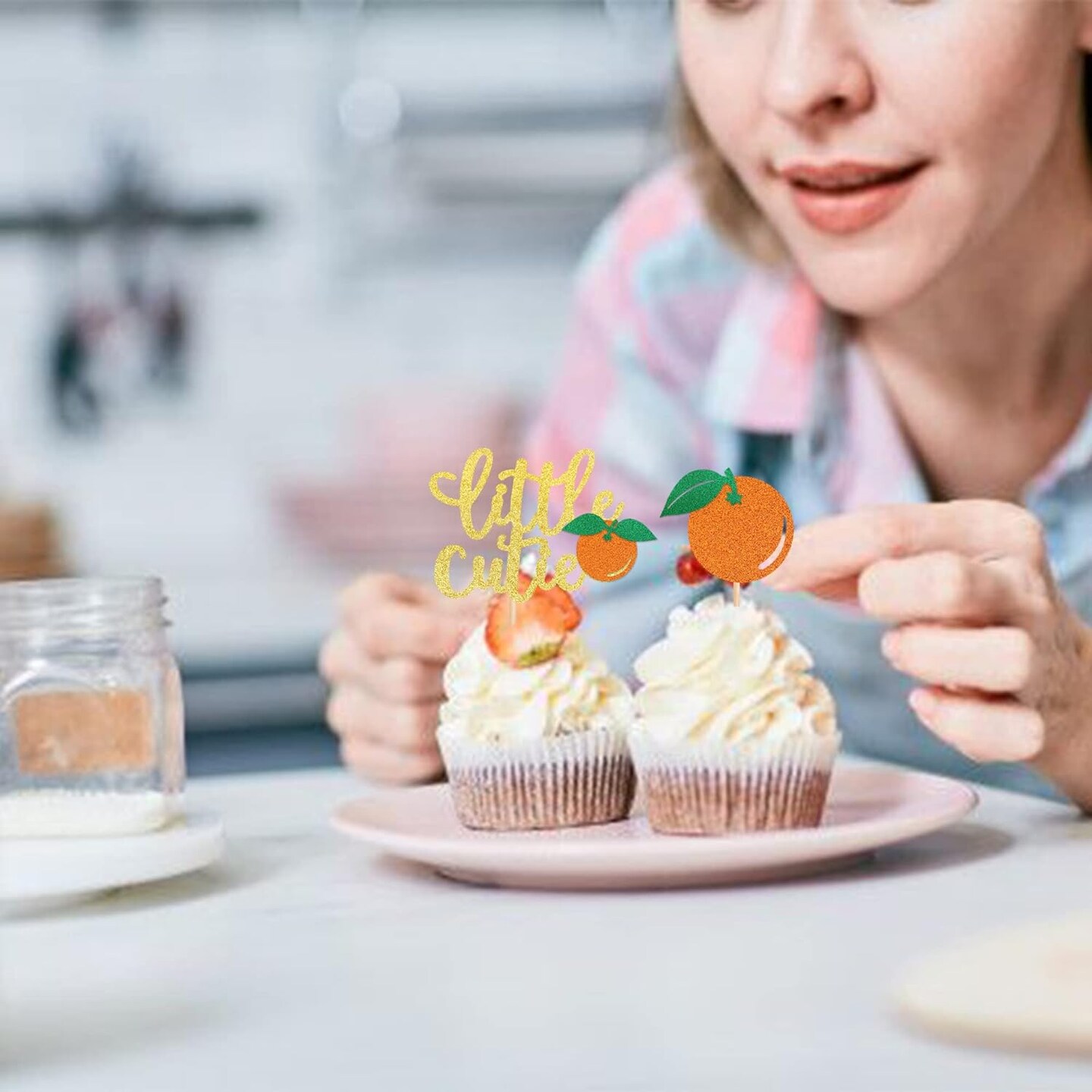 24 Pack Little Cutie Cupcake Toppers Glitter Tangerine Cupcake Picks Citrus Cake Decorations for Orange Theme 1.7"W x 5"H