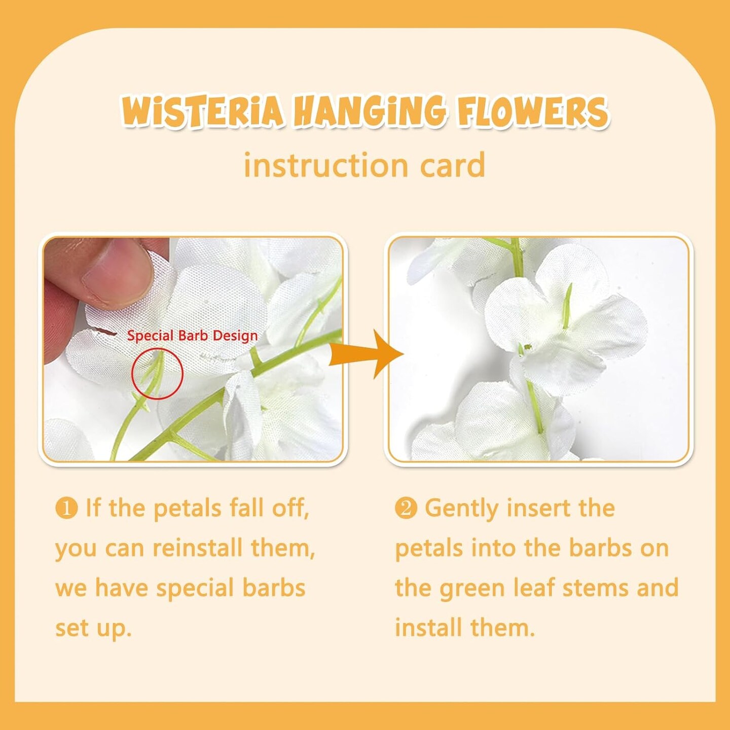 24 Pack Orange Wisteria Hanging Flowers Garland, 3.77 Feet Artificial Flower Vines, Fake Wisteria, Artificial Vines Hanging Garland for Backdrop Outdoor Yard Garden Decor