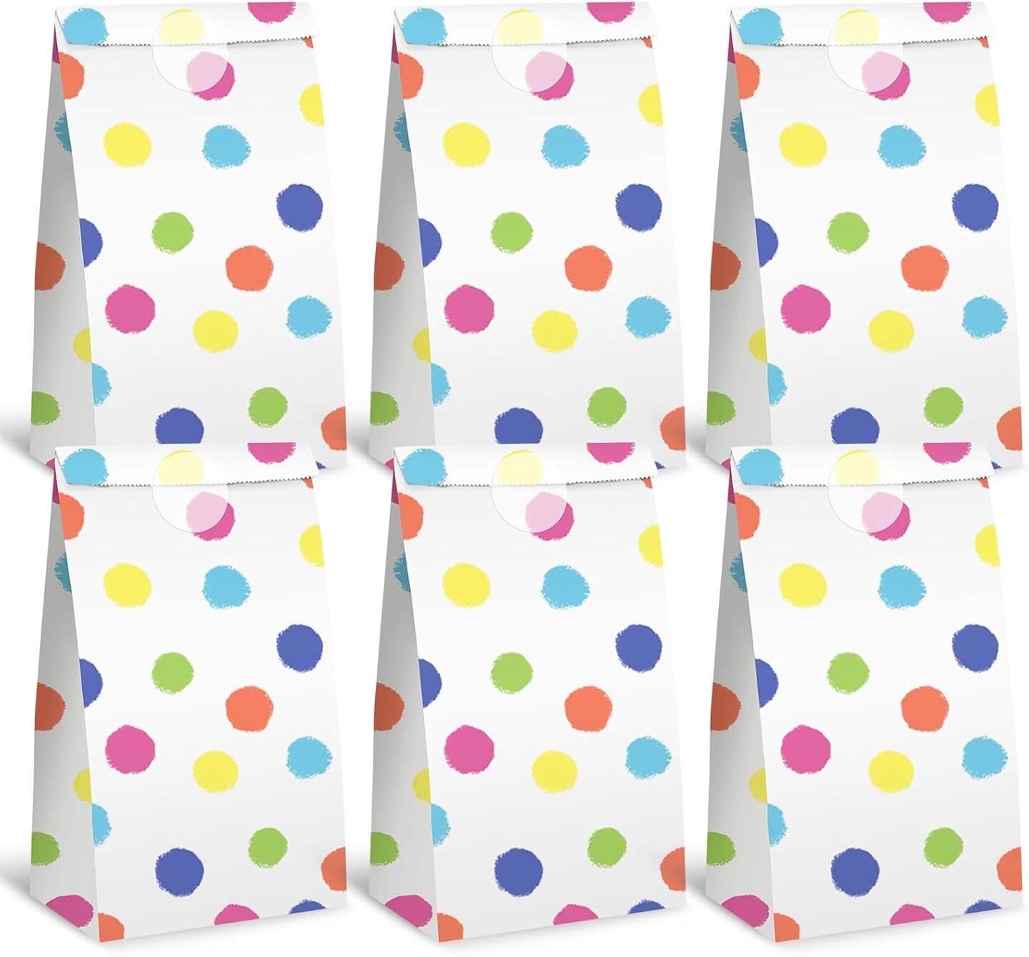 24 Pack Party Favor Bags with Stickers, 4.7" x 3.1" x 8.7" Bulk Goodie Treat Gift Bags for Weddings Baby Showers Birthdays Craft Supplies (Polka Dot)
