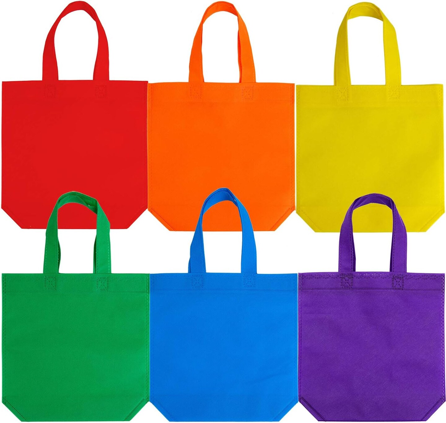 24 Pack Party Non-Woven Gift Bags Reusable Tote Bags in Bulk Rainbow Goody Bag with Handles for Birthday Party Supplies (9.5 x 9.5 Inches)